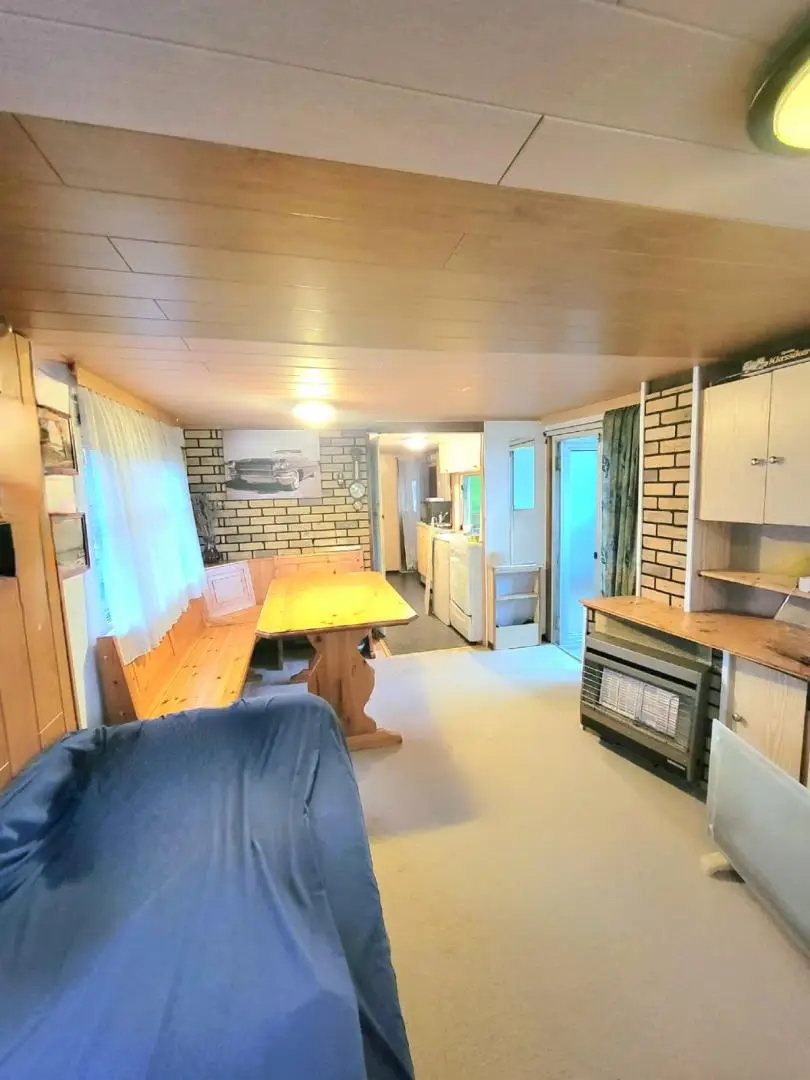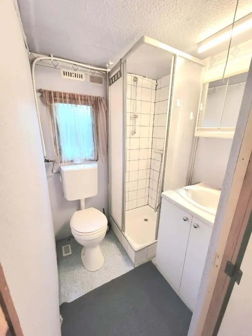 Die Bausubstanz, aus isoliertem Vollholz, hält Wind- und Wetterverhältnissen stand. Ein Geräteschuppen mit ca. 5 m² bietet genügend Platz für diverse Utensilien. Das Objekt ist komplett möbliert.