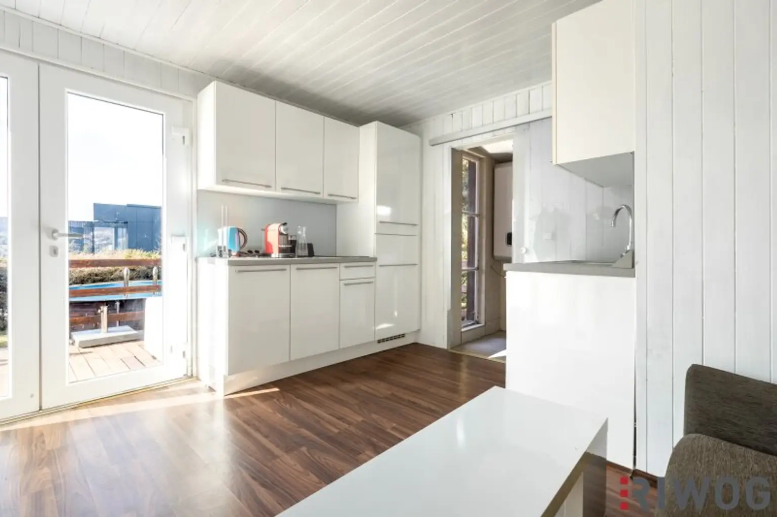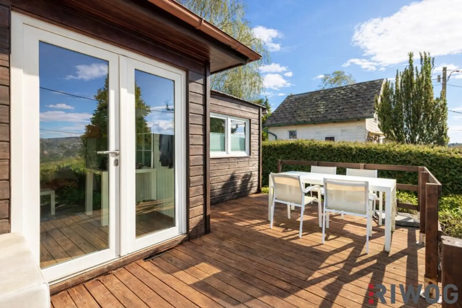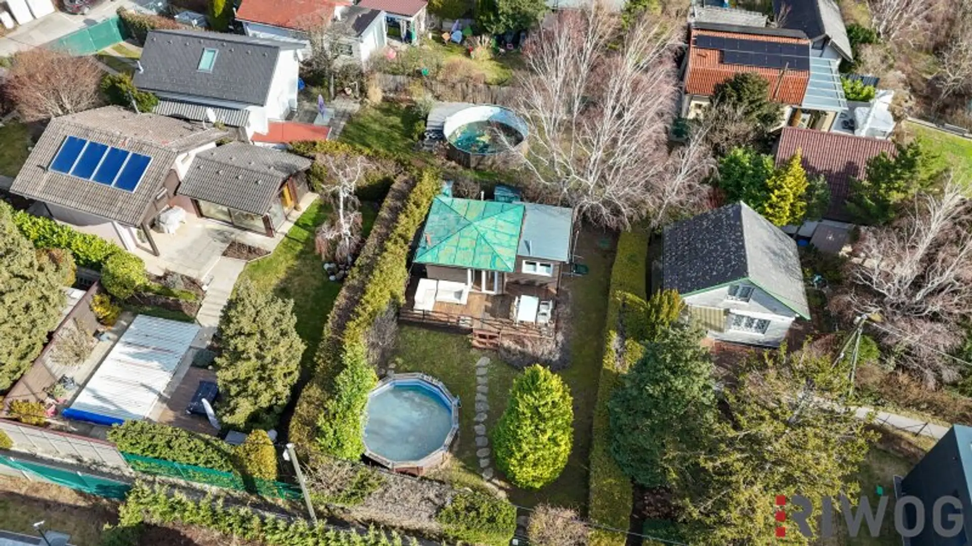 Die Raumaufteilung ist für die kleine Fläche sehr durchdacht und alles notwendige ist vorhanden und bietet ein sehr luftiges und offenes Raumgefühl mitten im Grünen. Die große Terrasse lädt zur Entspannung ein und der Pool sorgt für die entsprechende Abkühlung. Die Warmwasseraufbereitung erfolgt mittels Elektroboiler und beheizt wird es mittels Elektroheizstrahler. Ein Abbruch und Neubau kann durchaus eine verfnünftige Alternative sein um die Fläche und die Möglichkeiten dieses schönen Grundstücks zur Gänze zu nutzen. Auf Wunsch gibt es bereits einen unverbindlichen Fertigteil-Holzhaus Vorschlag von EasyHomes. Ein KFZ Abstellplatz ist nicht vorhanden und eine direkte Zufahrt mit einem Auto zum Haus ist bedingt durch den schmalen Gehweg nicht möglich.