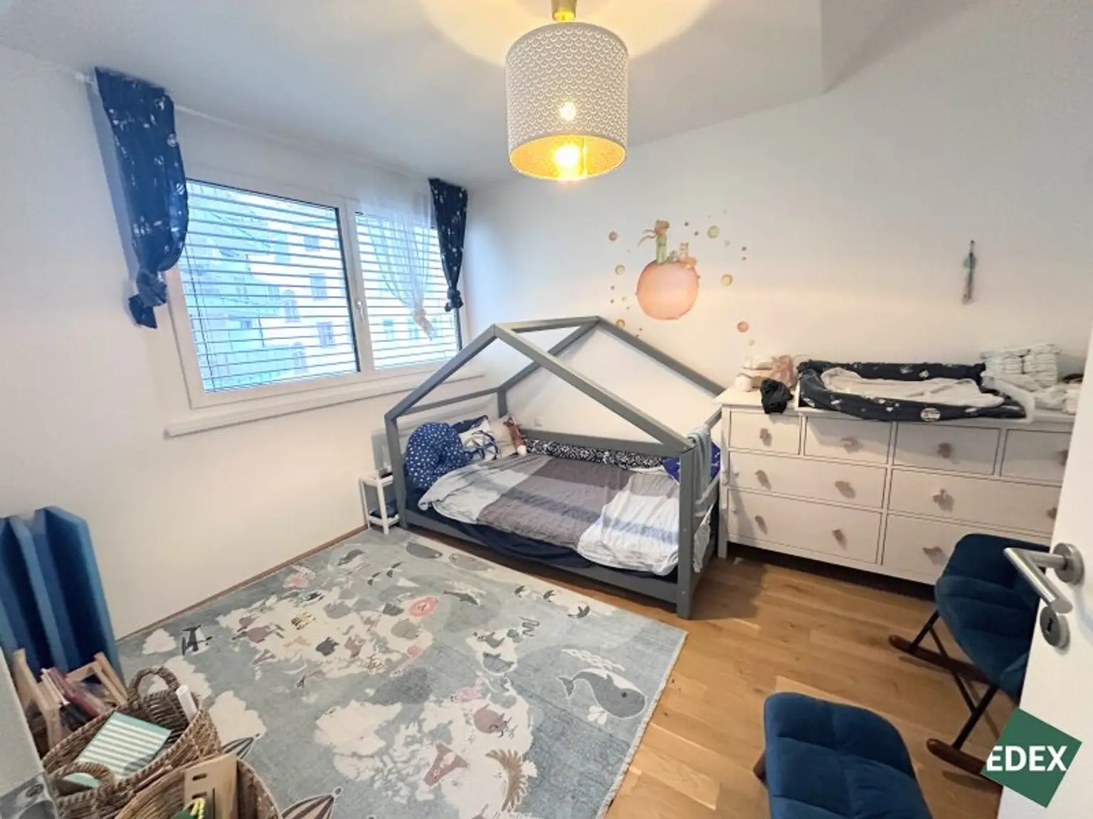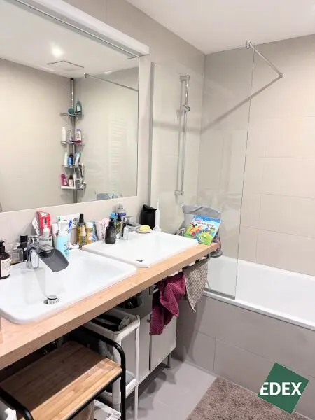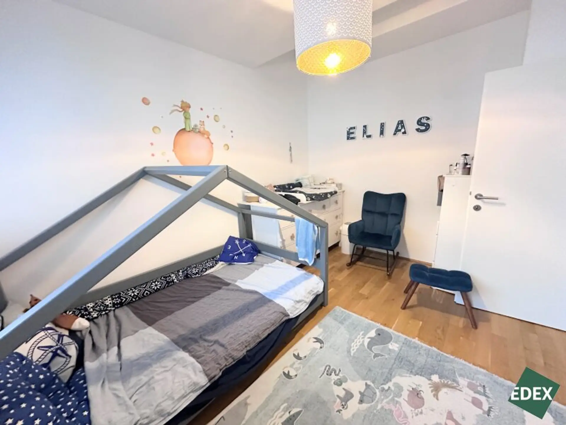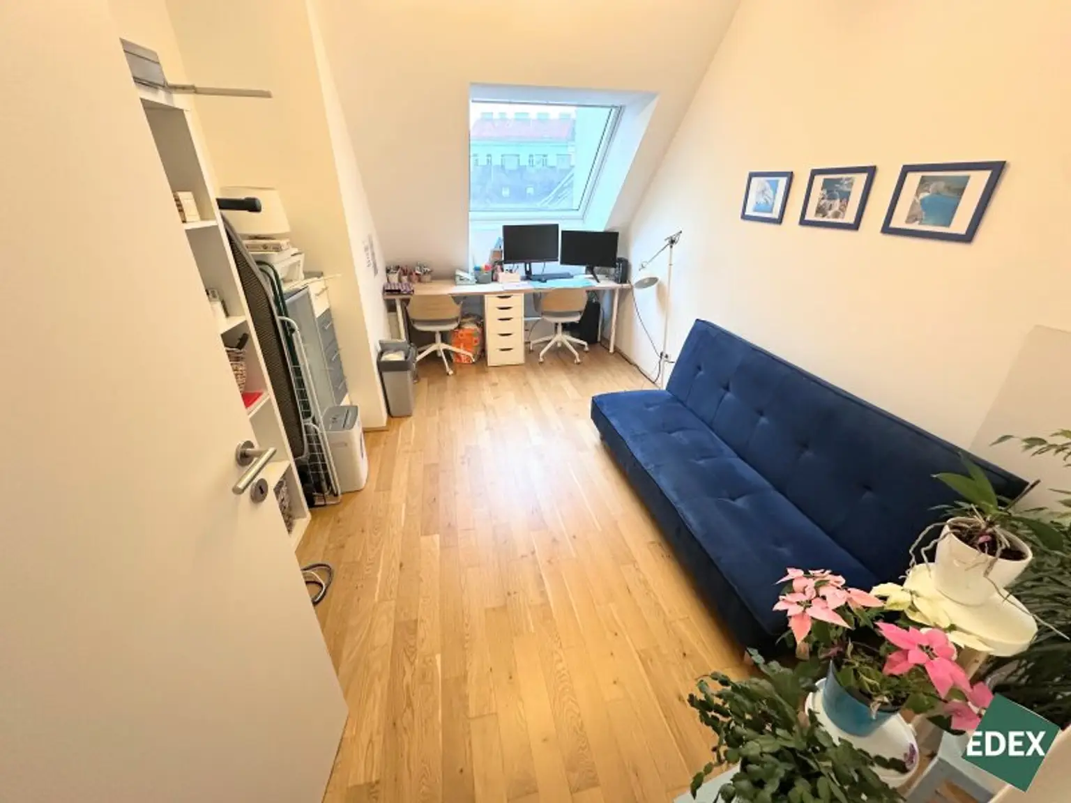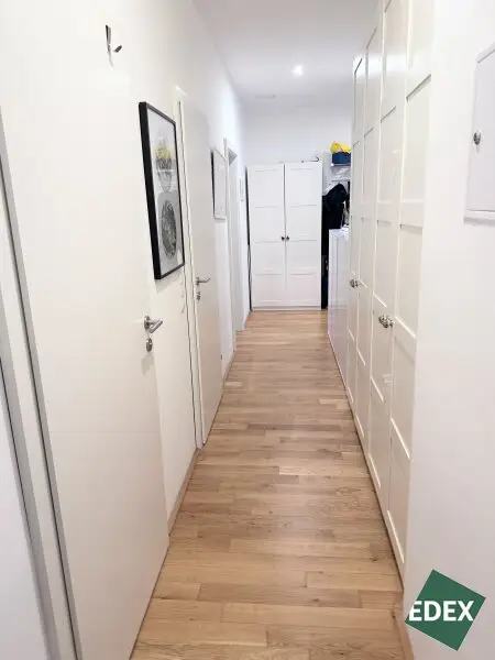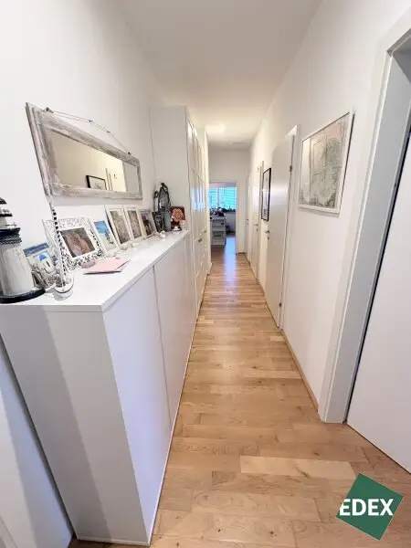 Drei separat begehbare Zimmer bieten vielseitige Nutzungsmöglichkeiten als Schlaf-, Kinder-, Gäste- oder Arbeitszimmer. Das stilvolle Badezimmer ist mit Badewanne, Waschbecken und Waschmaschinenanschluss ausgestattet. Zusätzlich gibt es ein separates WC mit Handwaschbecken sowie einen praktischen Abstellraum.