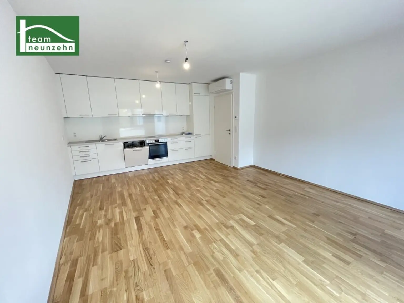 Ein besonderes Highlight der Wohnung ist die stilvolle Wohnküche mit hochwertiger Einbauküche samt Markengeräten von Bosch. Zusätzlich sorgt eine integrierte Klimaanlage – besonders in den warmen Sommermonaten – für ein angenehmes Wohnklima und hohen Komfort.