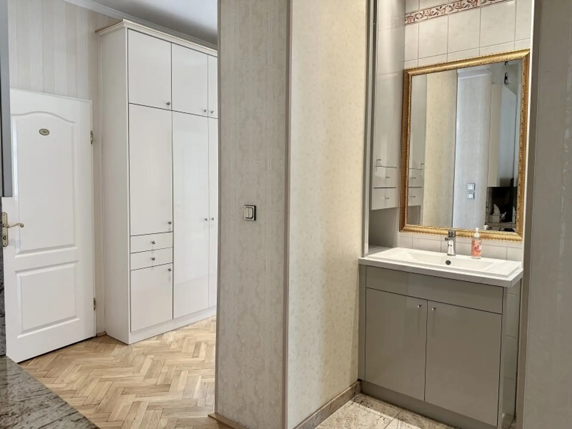 Das aktuelle Layout bietet vier weitläufige Zimmer mit gut erhaltenem Fischgrätparkett und originalen Altbautüren. Durch jeweils zwei bis drei Fenster pro Raum ist die Wohnung besonders lichtdurchflutet. Die Einbauküche ist mit einer Naturstein-Arbeitsplatte sowie Geräten von Bosch, AEG und Gorenje ausgestattet. Das großzügige Badezimmer verfügt über eine Badewanne, ein Bidet und ein Fenster zum Lichthof für eine gute Belüftung. Das Vorzimmer verfügt über eine Video-Gegensprechanlage. Ein vorliegender Umbauvorschlag ermöglicht zudem die Erweiterung auf drei Badezimmer inklusive einer großzügigen Master-Suite.