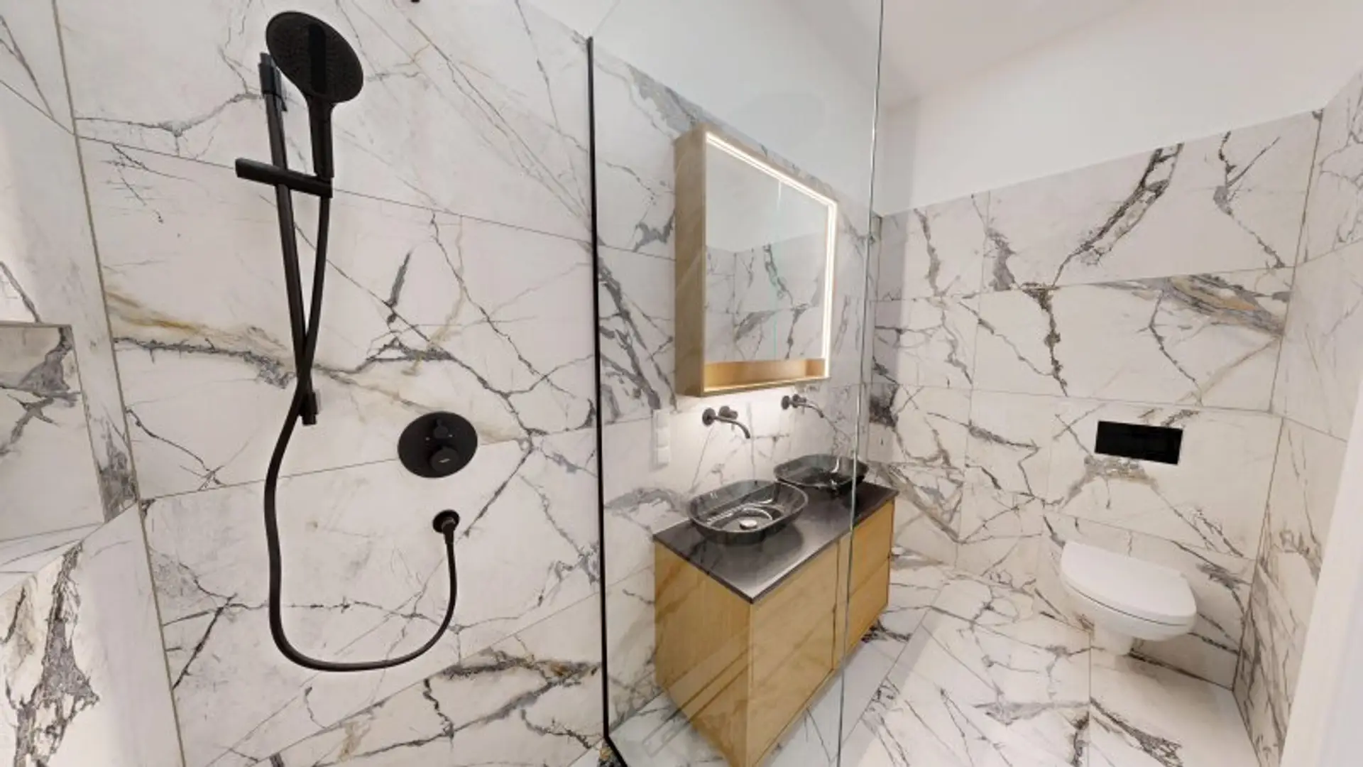 * Bad mit Doppelhandwaschbecken und WC