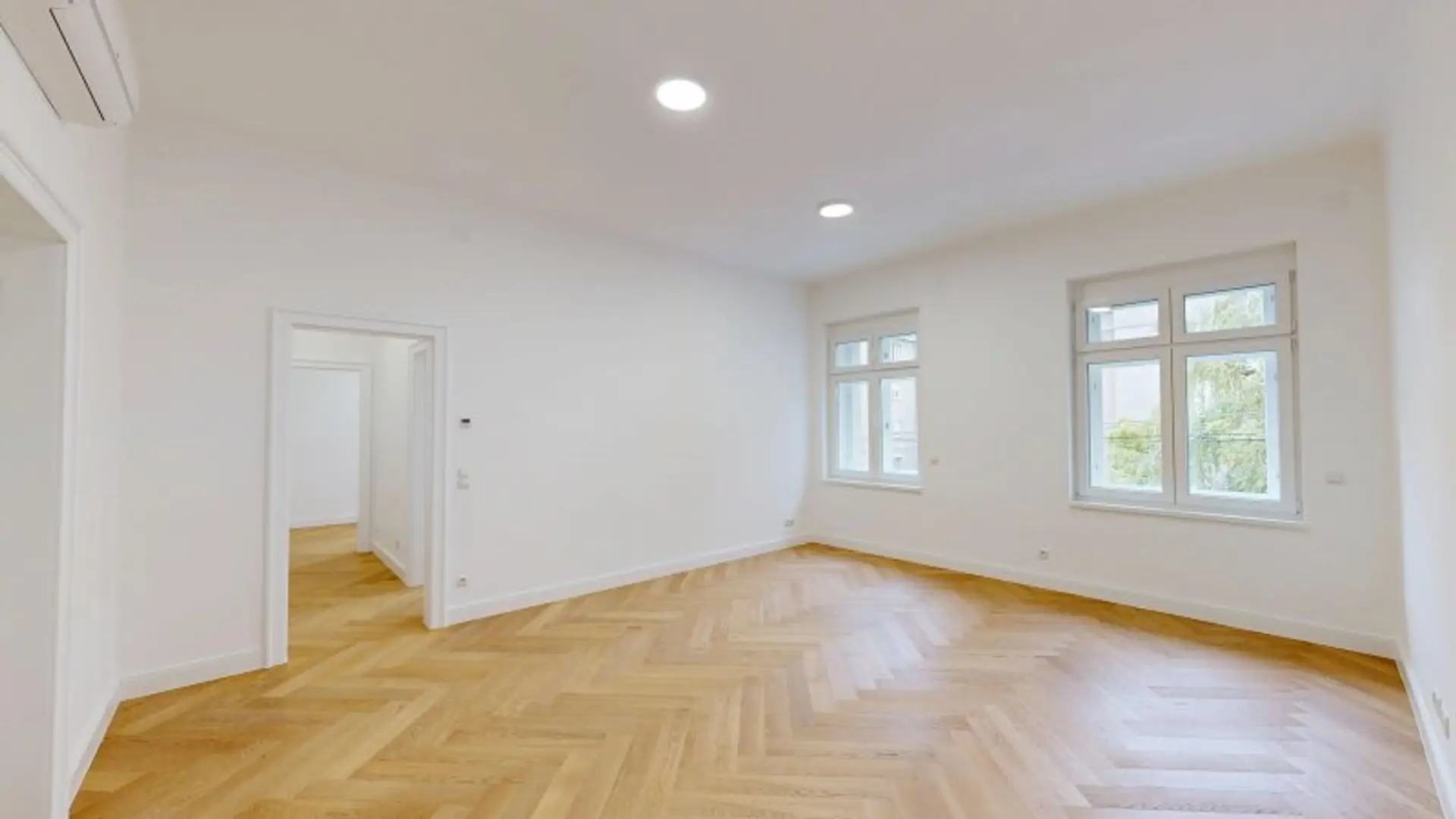 Gleichzeitig bietet die Wohnung modernsten Wohnkomfort: eine umfassende Kernsanierung mit Fußbodenheizung, Einzelraumthermostaten, Klimageräten in allen Aufenthaltsräumen, Fernwärmeversorgung (Seltenheit im Altbau!) sowie mehrfach verglaste Fenster mit elektrischen Aluminium-Rolladen und Insektenschutz. Alles neu – von den Leitungen bis zum Estrich – mit viel Liebe zum Detail und Fokus auf Qualität.