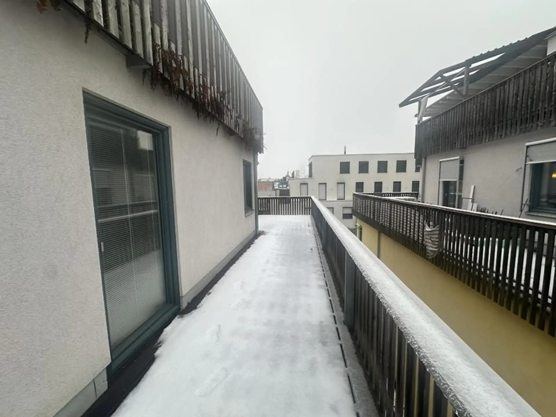Aktuell steht eine ansprechende und repräsentative 4-Zimmer-Familienwohnung im Dachgeschoß mit großer Wohnküche (Küchenbereich mit Fenster), 3 Schlafzimmern, einer Loggia sowie einer großen Terrasse zur Verfügung. Der Wohnung ist ein Garagenplatz zugeordnet – dieser ist im Kaufpreis inkludiert.