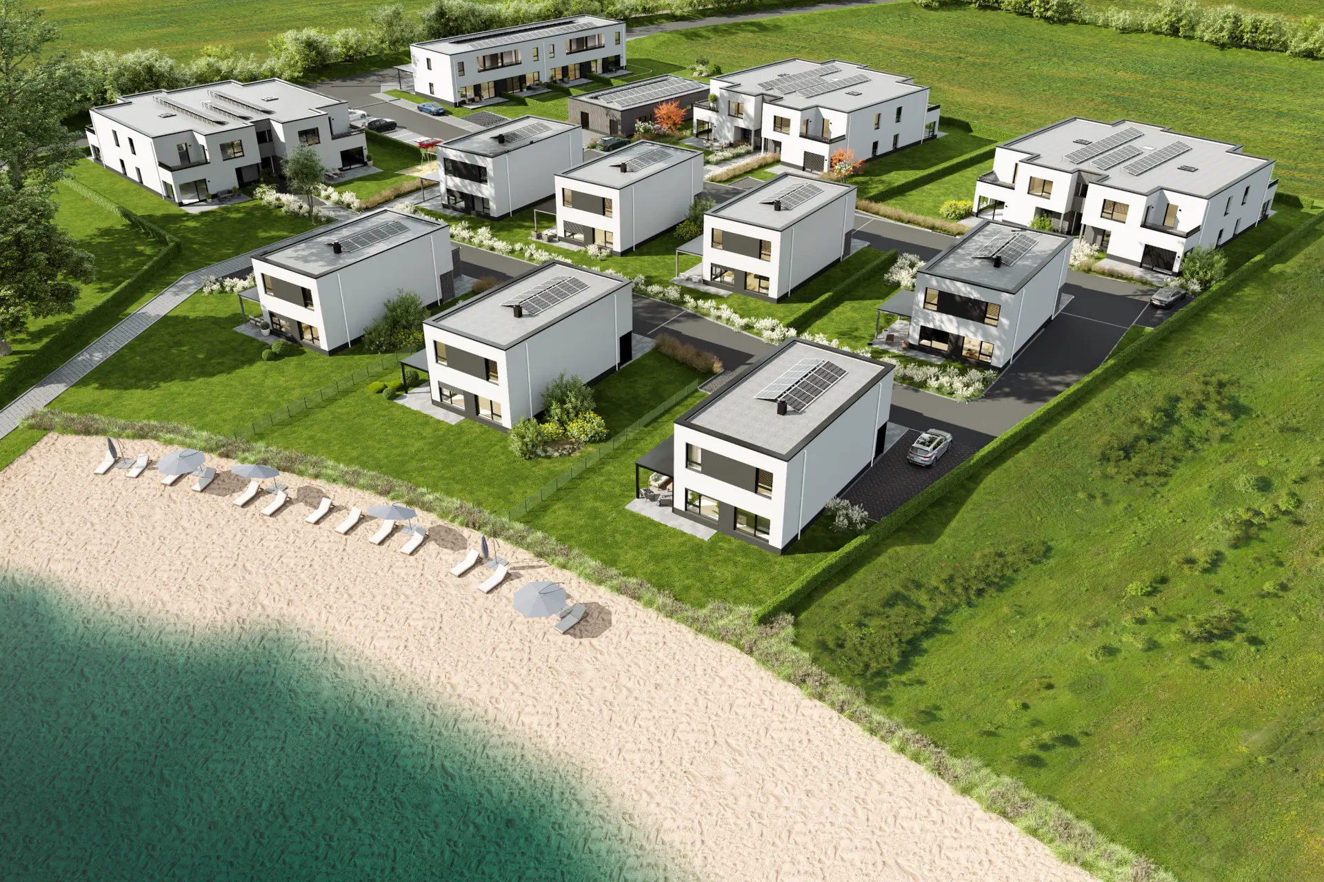 „Am See“ vereint Urlaubsfeeling mit Alltagstauglichkeit – ein Wohnort, der Naturverbundenheit, Mobilität und Lebensqualität auf besondere Weise verbindet.