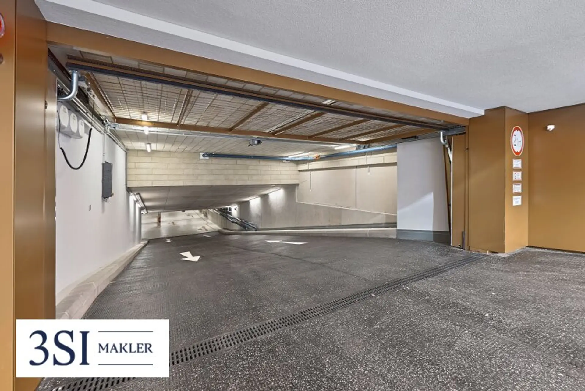 Die Zufahrt erfolgt über ein sensorgesteuertes Garagentor, der Zugang ist ebenso mittels Schlüssel möglich.