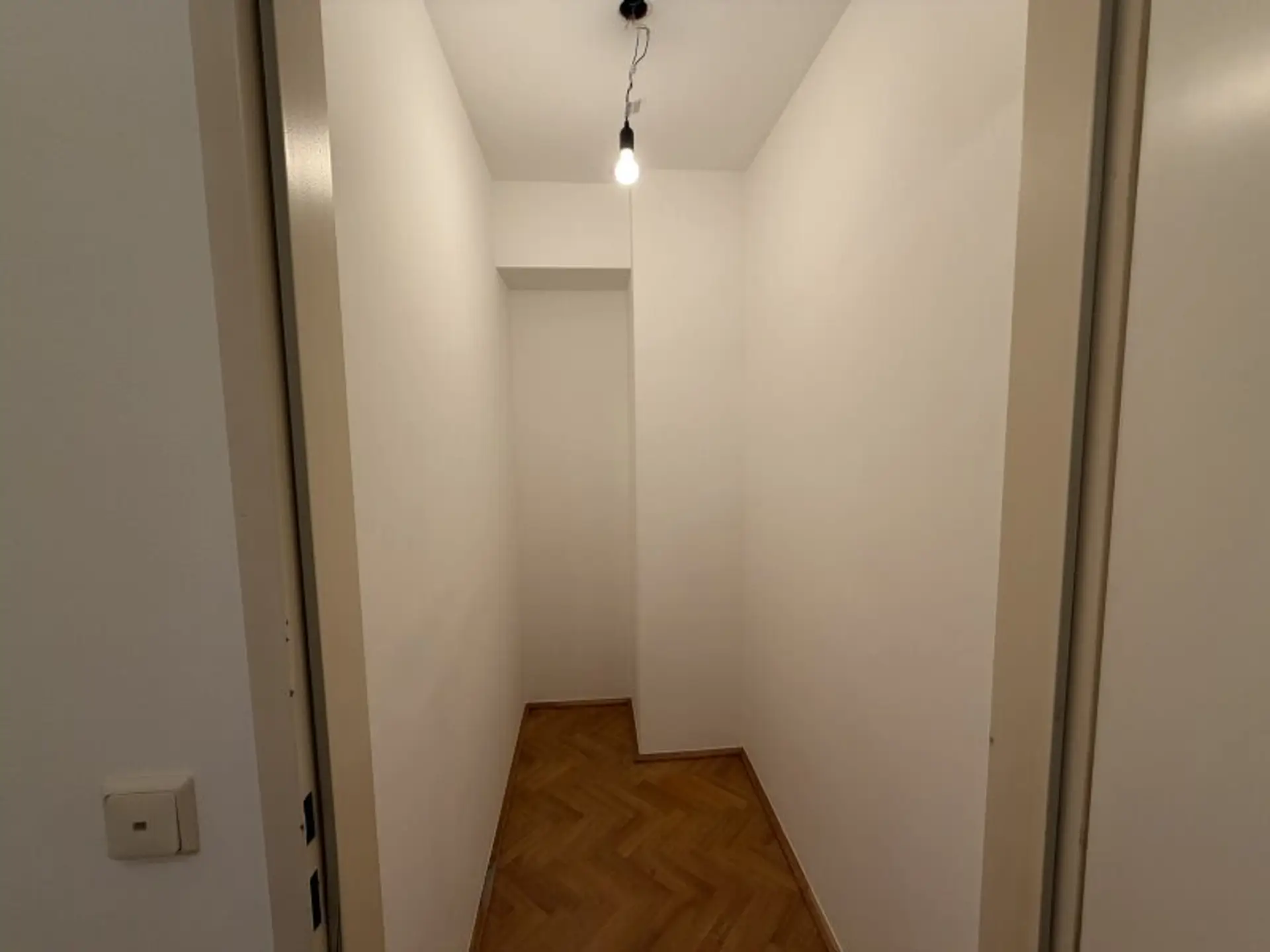 Das Badezimmer verfügt über Dusche, Waschbecken, Badewanne und WC. Zusätzlich bietet ein separater Abstellraum wertvollen Stauraum für Haushaltsgeräte, Vorräte oder persönliche Gegenstände.