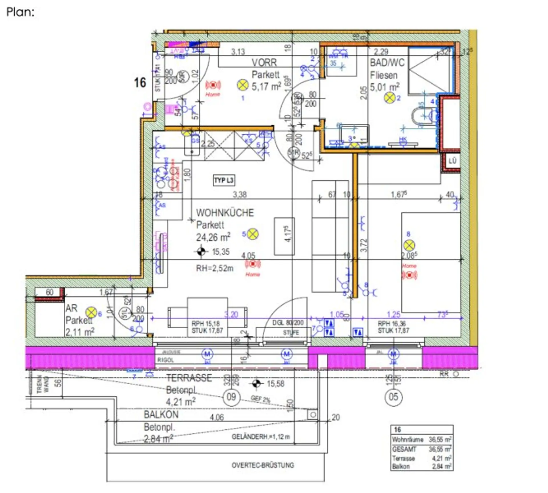 * Wohnküche + Schlafzimmer: ca. 24,26 m²
