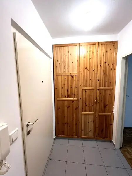 Die Wohnung ist mit Parkettböden und Fliesen ausgestattet.