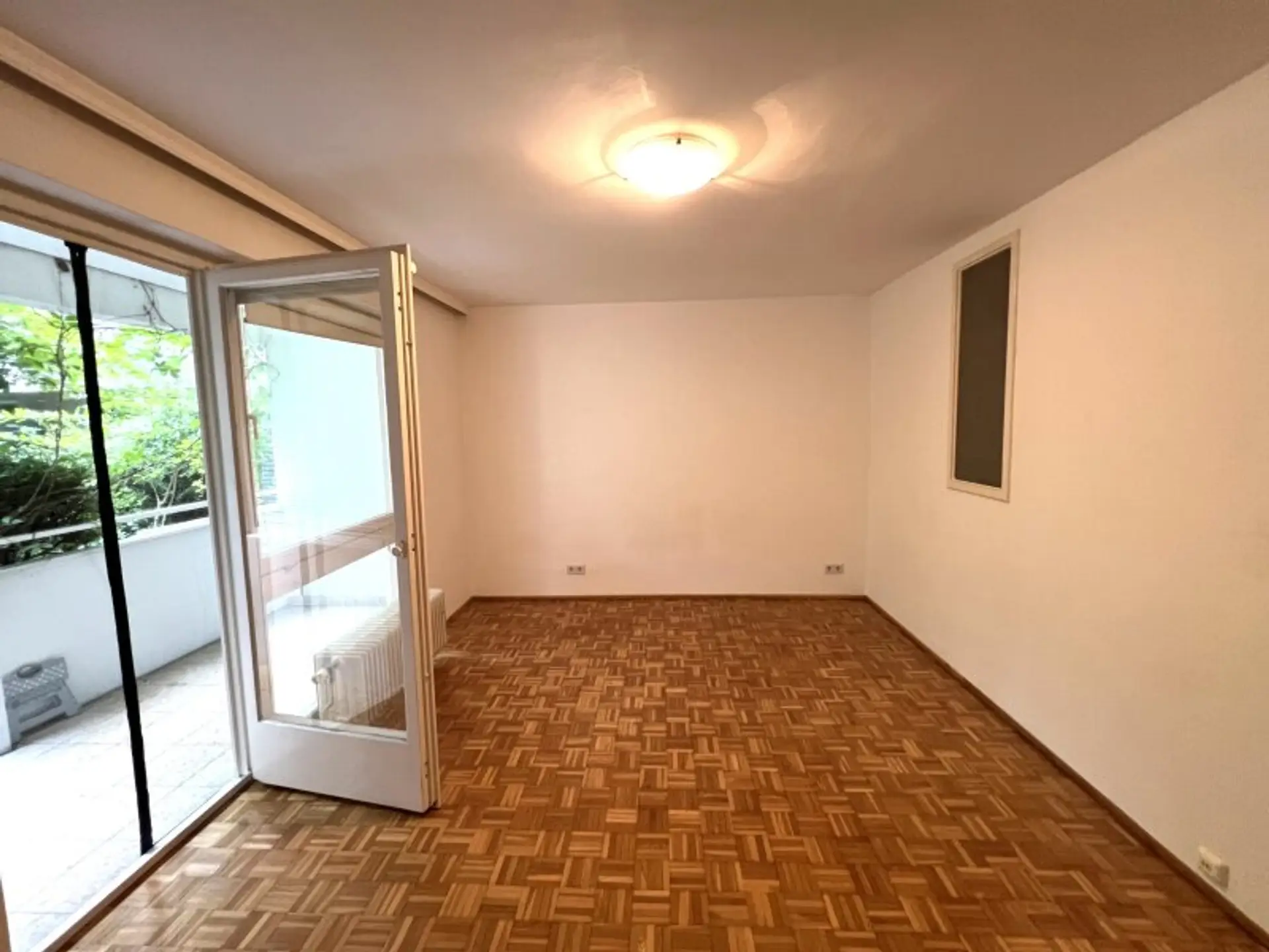 In einem gepflegten Neubauhaus, situiert in den Innenhof und grünen Garten, befindet sich diese helle und ruhige 1-Zimmerwohnung im 1. Stock / Hochparterre.