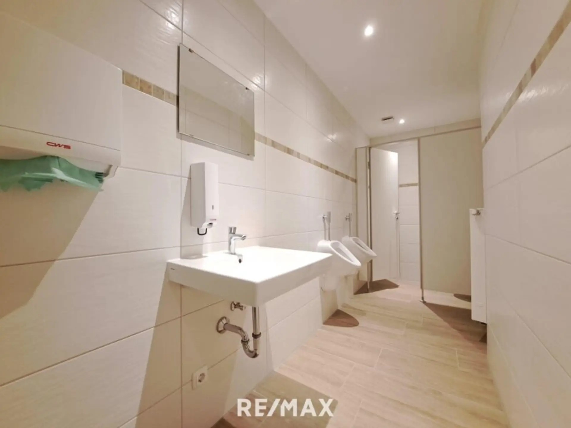 Aufgeteilt ist die Fläche in einen großen Gastraum, einen Nebenraum sowie Toiletten für die Gäste. Des Weiteren stehen zwei Kühlräume und eine großzügige Lagernutzfläche im Keller zur Verfügung.
