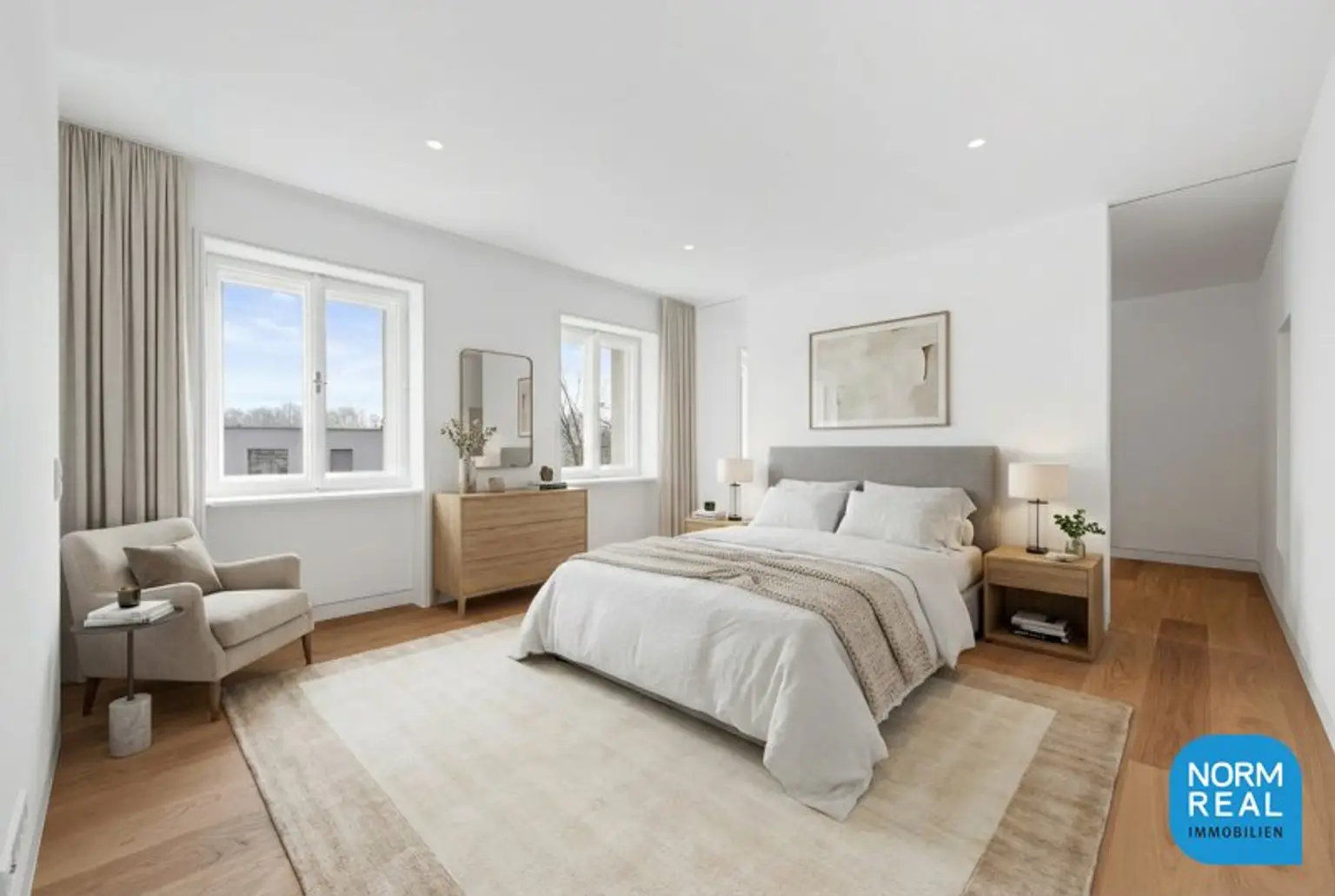 Die Villa verfügt über mindestens 4 Schlafzimmer. Auf der Eingangsebene sind zwei geräumige Schlafzimmer, zwei Bäder, eines mit Wanne eines mit Dusche und ein als Garderobe/ Büro nutzbares Zimmer, im ersten Stock der Master-Bedroom mit großem ensuite Bad mit Wanne Dusche und WC und zwei getrennt begehbaren Schrankräumen, sowie ein weiters Kinder- oder Gästezimmer/Büro eingerichtet. Der Dachstuhl wurde zu einem großen loftartigen Raum mit Duschbad und Loggia mit Weitblick umgebaut. Dieser könnte ein wunderbarer Rückzugsort zum Lesen und Arbeiten sein. Anschlüsse für eine Teeküche sind ebenfalls vorhanden.
