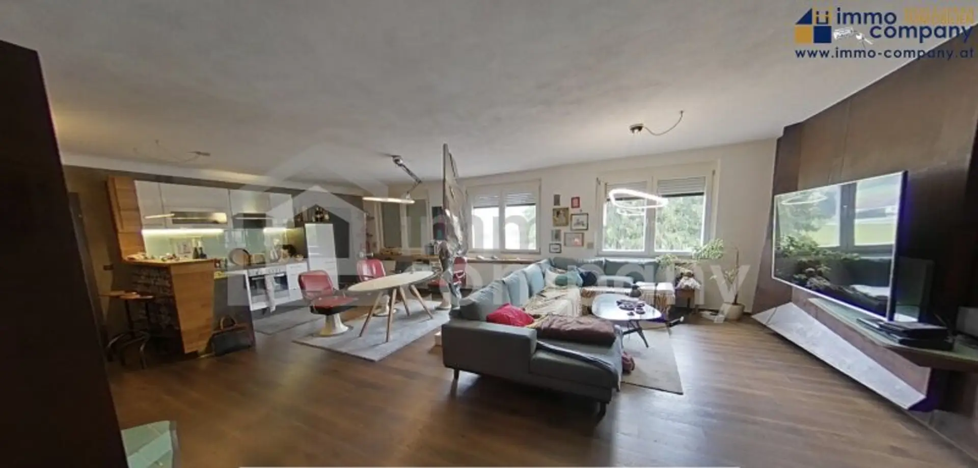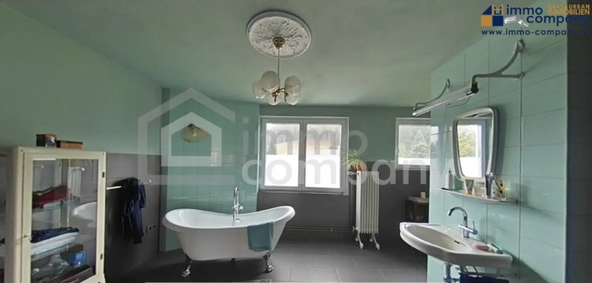Der 1. Stock ist der ausgefallene, hochwertige Wohnbereich. Wohnen, Essen und Kochen in einem großen Raum. Dazu der Kachel-Grundofen, der auch das ganze Haus heizen kann. Das Bad mit Dusche, Wanne und WC, 3 weitere Zimmer und noch ein WC extra sind auf dieser Etage. Die Fläche beträgt ca. 104 m2.