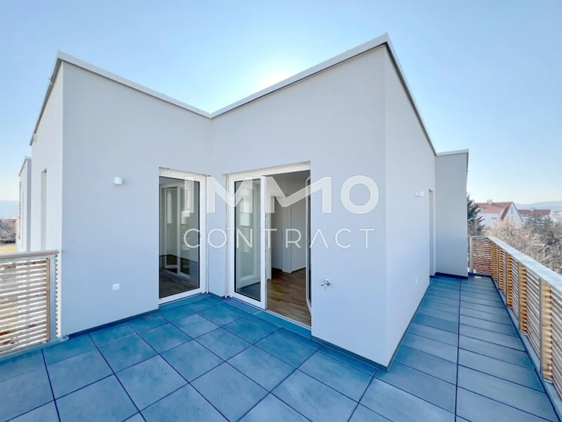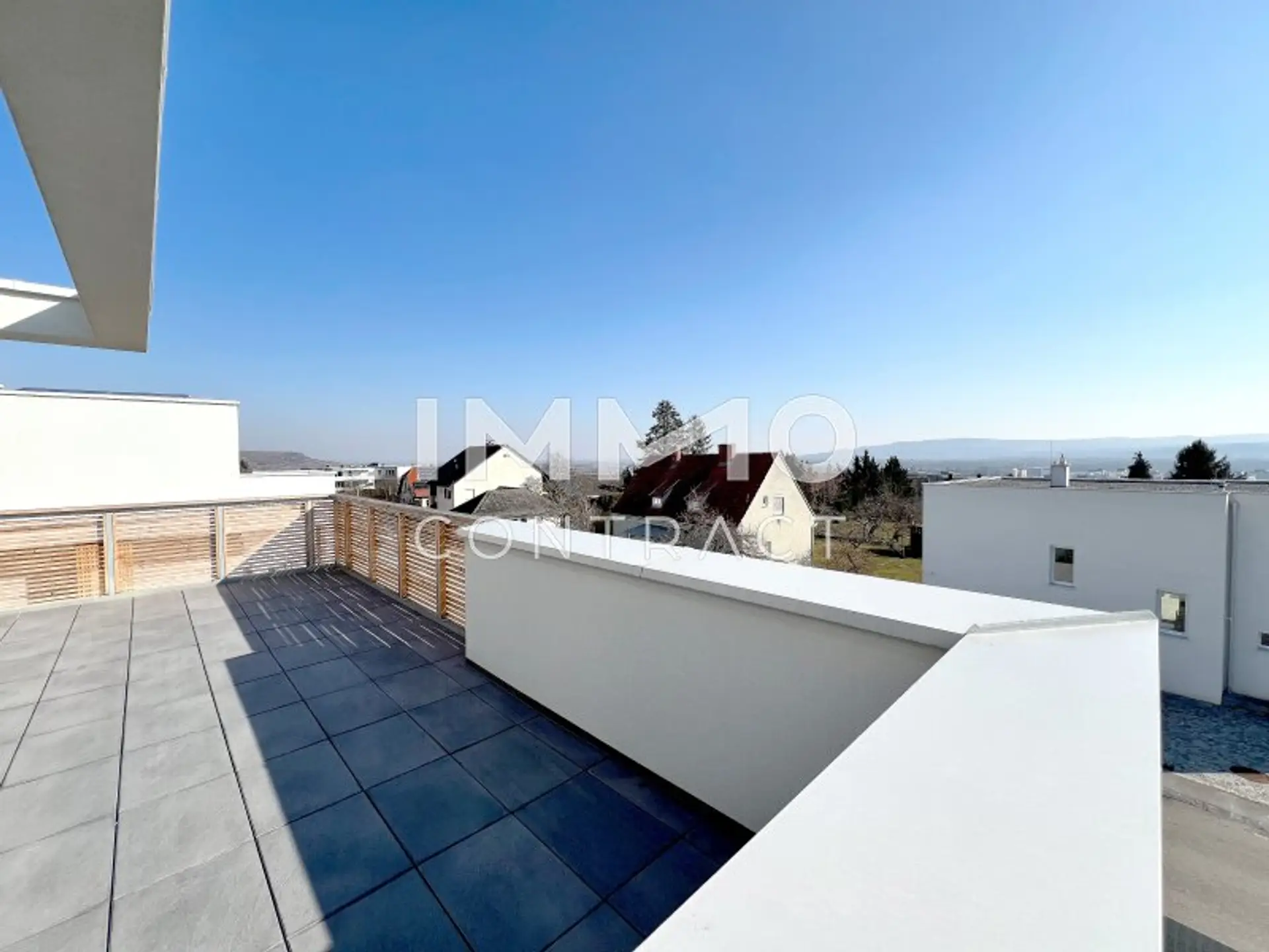 Die Dachgeschosswohnungen bezaubern mit 35qm - 65qm großen Terrassen und Panoramablick.