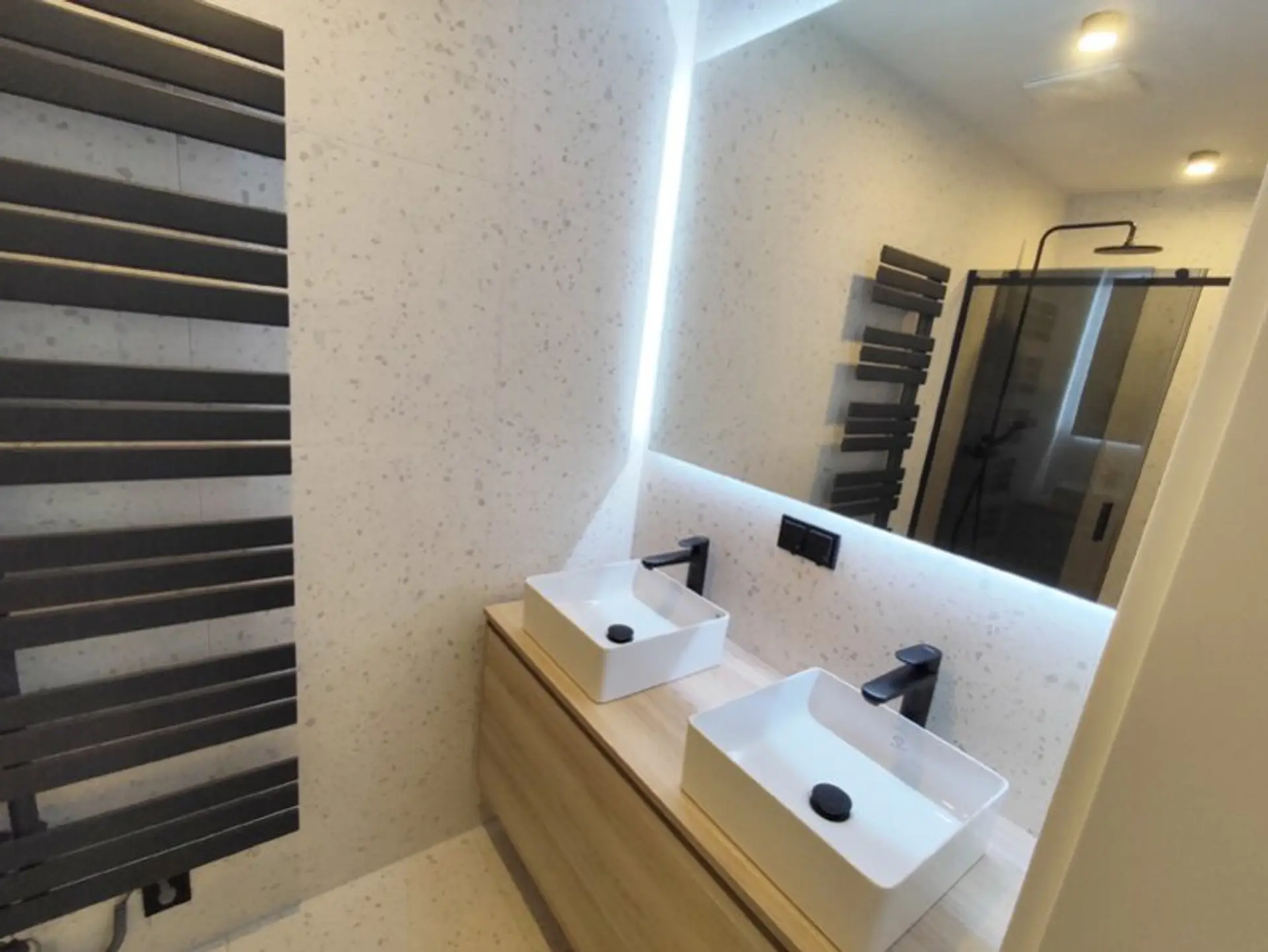 * Fliesen: venezianischer Terrazzo in Weiß und Grau
