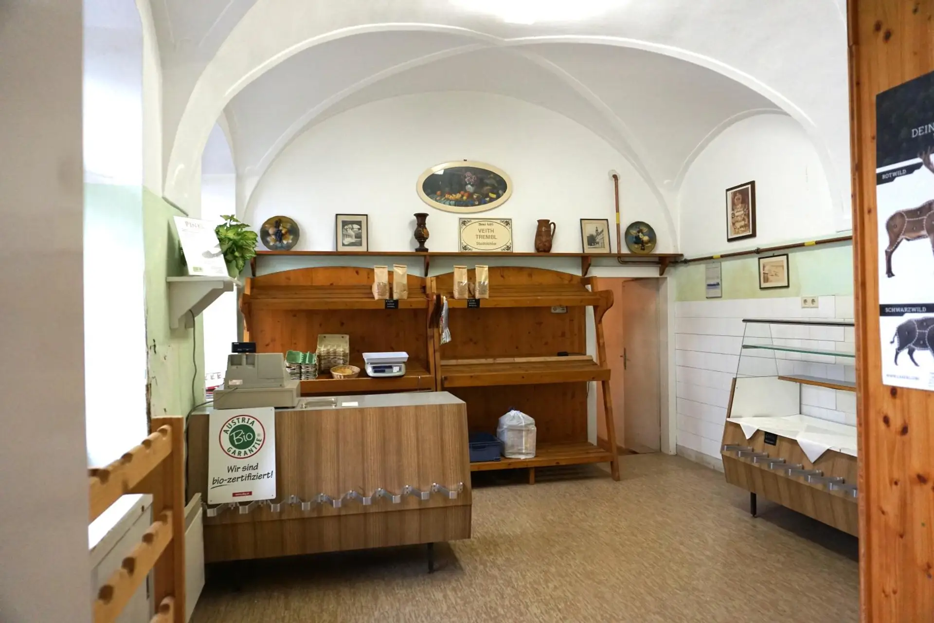 Durch die Kombination aus Verkaufsraum, Arbeitsräumen, Kühlhäusern und Aufenthaltsbereich eignet sich das Objekt besonders für die Verwendung als z.B. Hofladen, Greißlerei oder Vinothek – ebenso für kreative Geschäftskonzepte.
