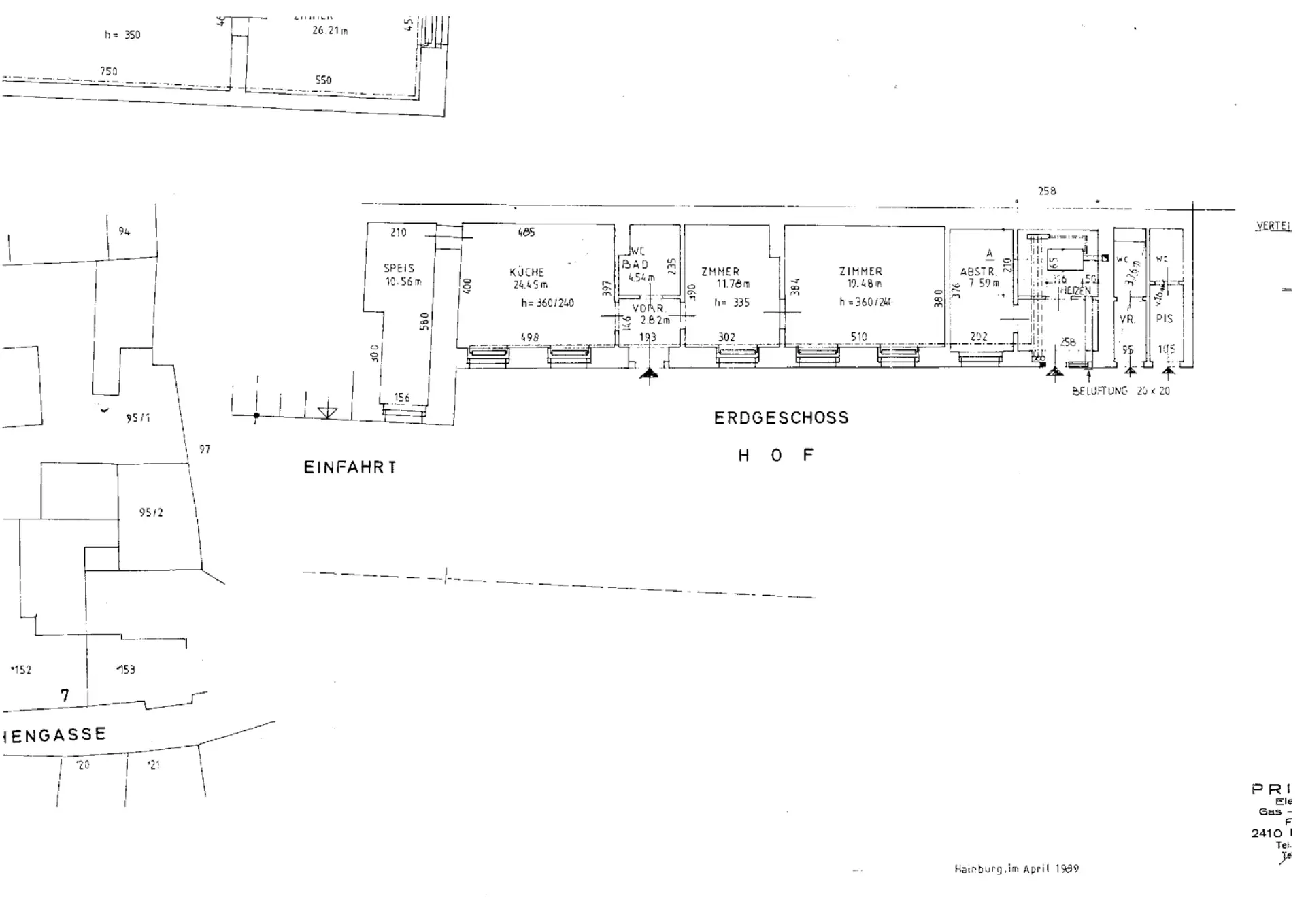 Die Einheit befindet sich im Erdgeschoss eines historischen Bürgerhauses (Baujahr vor 1900) und bietet insgesamt ca. 100 m² Nutzfläche mit flexibler Raumaufteilung.