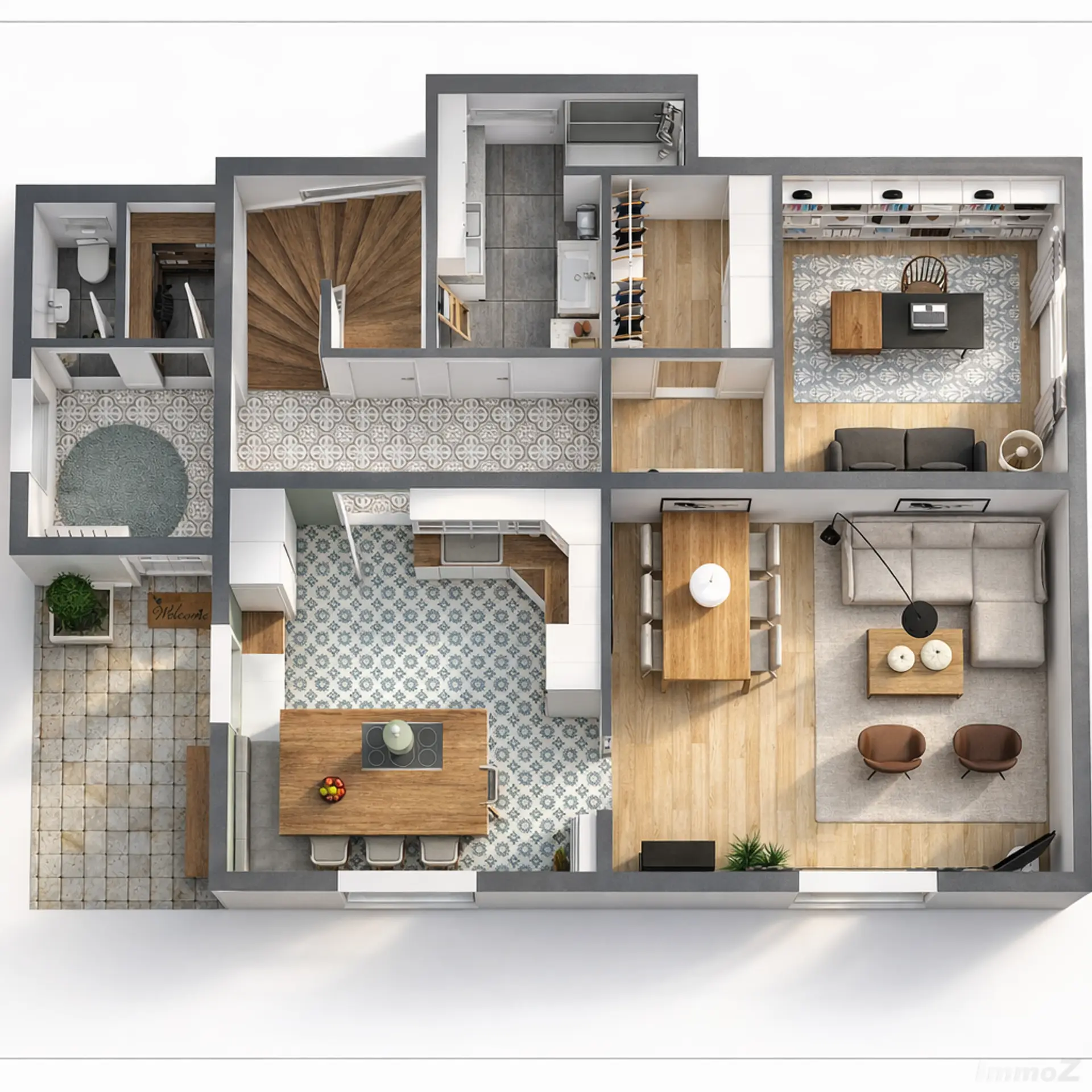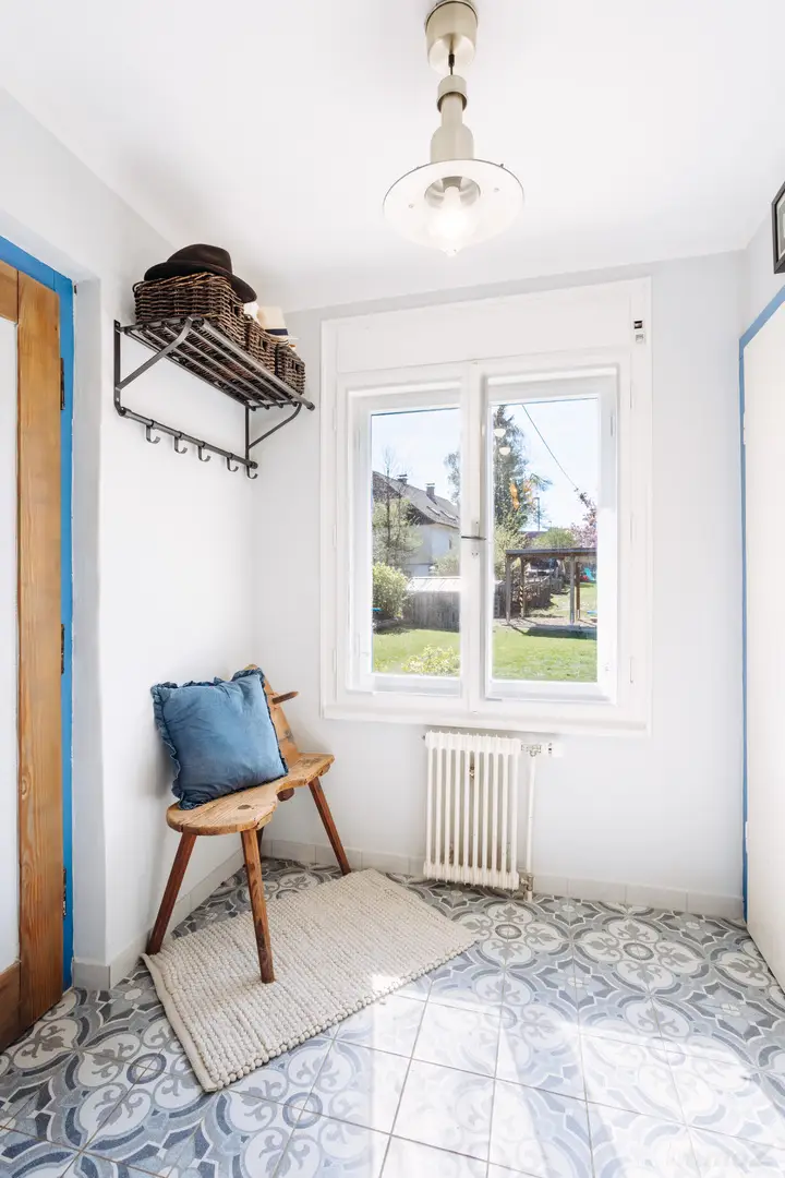 Das Erdgeschoss überzeugt durch eine praktische und familienfreundliche Gestaltung. Herzstück ist die großzügige, im Jahr 2024 renovierte Küche im Landhausstil mit Kücheninsel, Essbereich und Fußbodenheizung. Ergänzt wird diese Ebene durch ein helles Wohnzimmer, ein Gästezimmer beziehungsweise Homeoffice, ein Badezimmer mit Dusche und Wäschebereich, ein separates WC, eine Speis, einen Abstellraum sowie einen einladenden Vorraum.