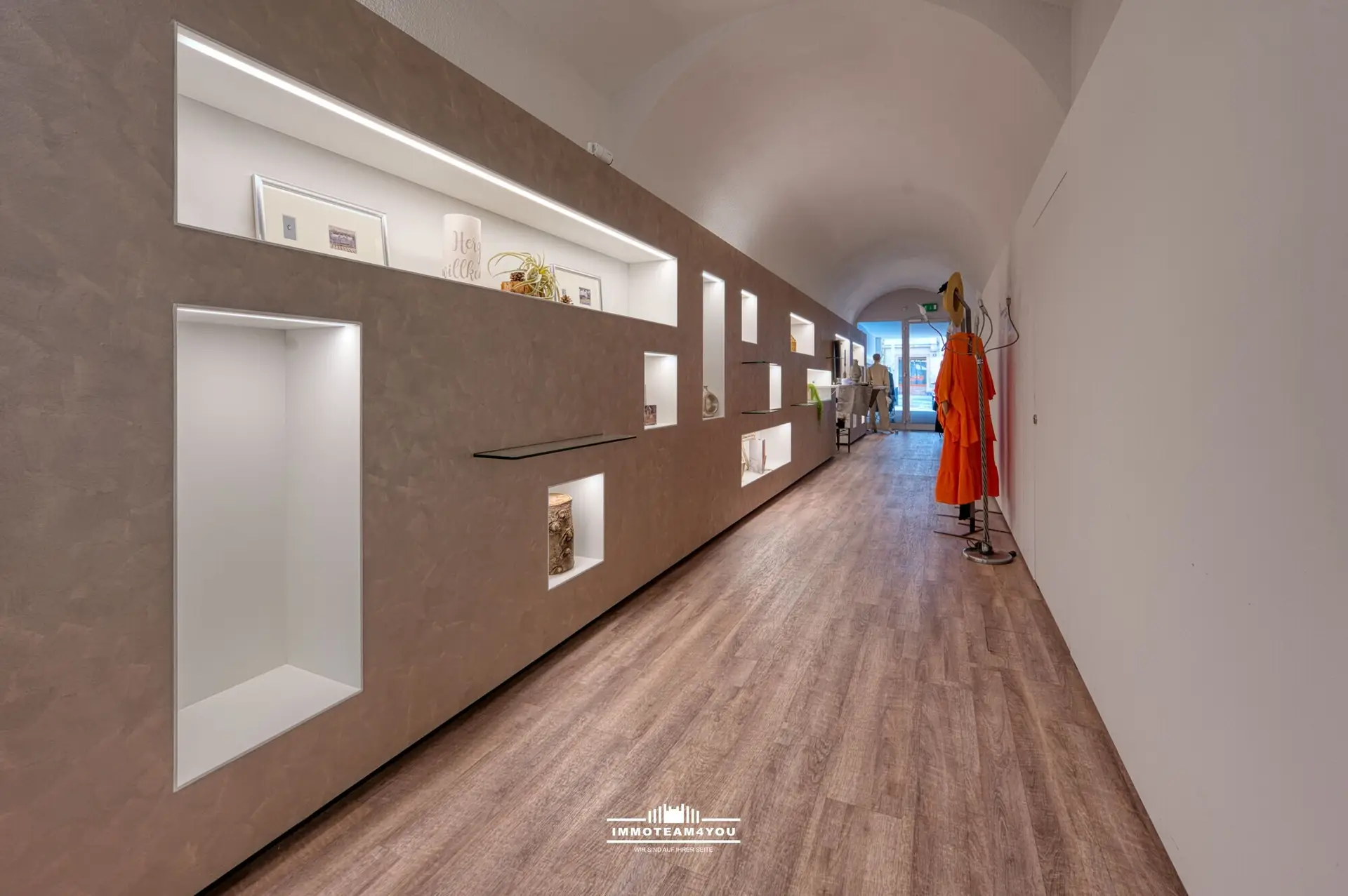Der repräsentative und prominente Standort sorgt für hohe Sichtbarkeit und Kundenfrequenz. Ein einladender Eingangsbereich schafft einen angenehmen ersten Eindruck und eignet sich zudem hervorragend für Produktpräsentationen oder dekorative Gestaltung.