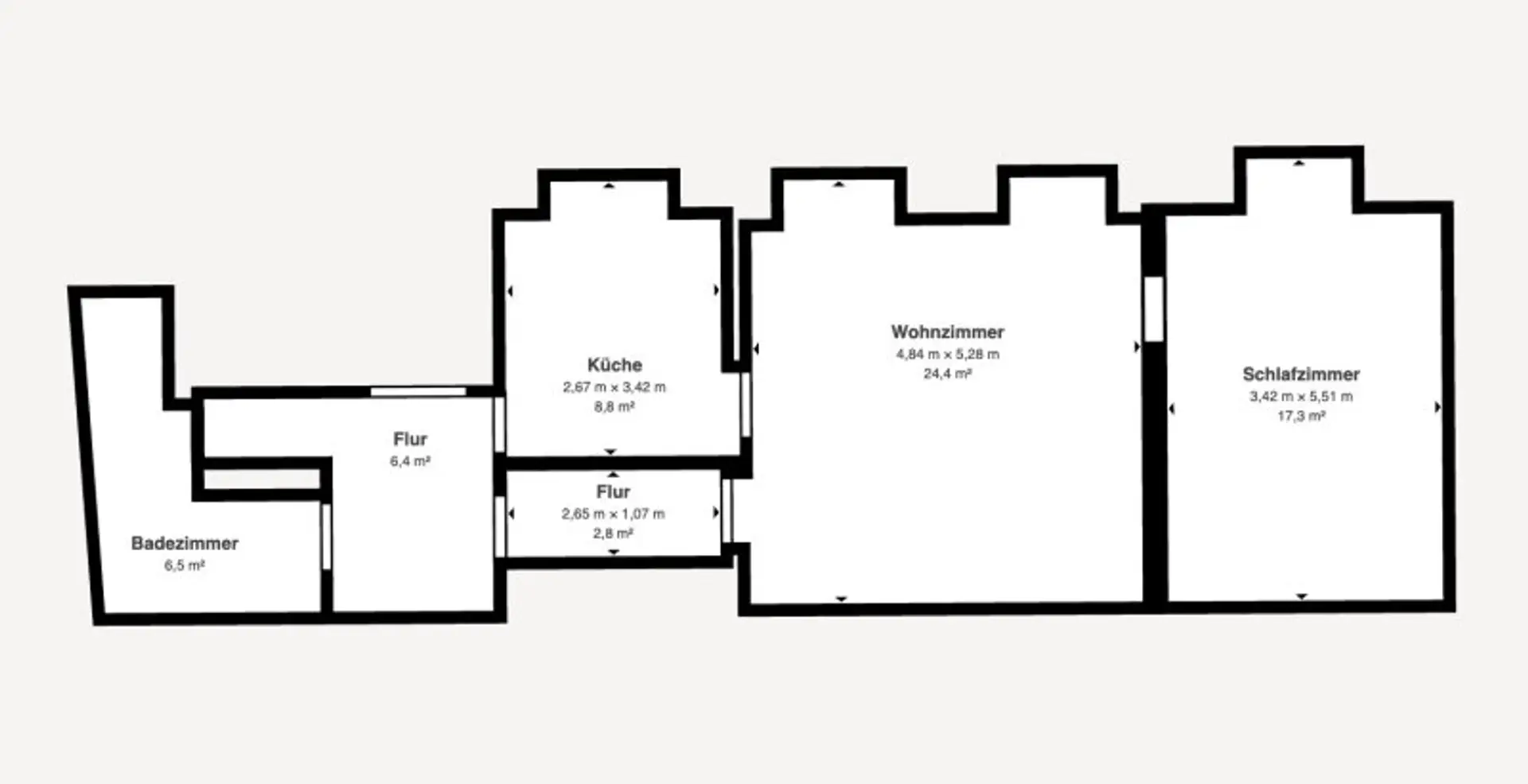 * 1 Wohnzimmer, 1 Schlafzimmer, separate Küche (mit Fenster), Bad mit Wanne, Abstellraum