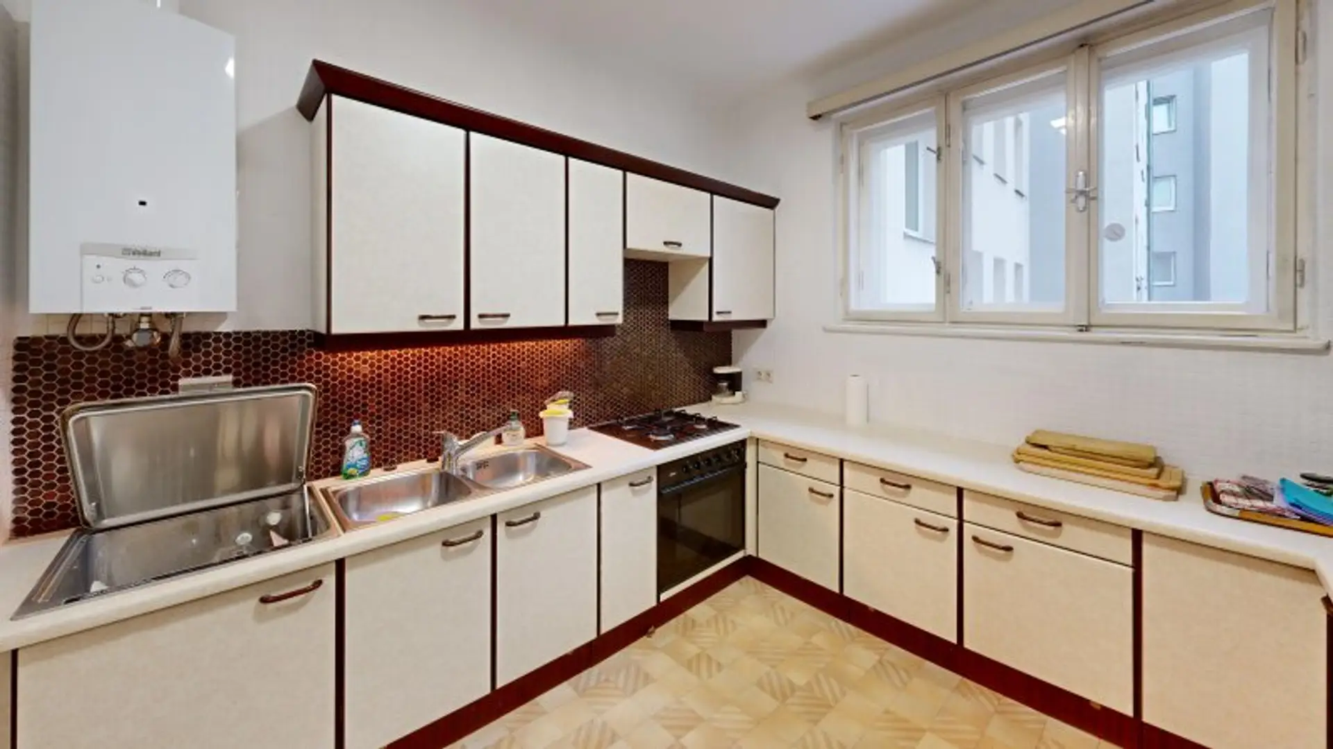 Diese teilrenovierte ca. 125 m² große Wohnung befindet sich im 2. Stock eines Wohnhauses aus ca. 1955 mit Lift und besteht grundbücherlich aus zwei separaten Wohnungen, die durch einen Durchbruch miteinander verbunden wurden. Besonders hervorzuheben ist, dass sich auf dieser Etage auf der betreffenden Stiege ausschließlich diese beiden Wohnungen befinden.