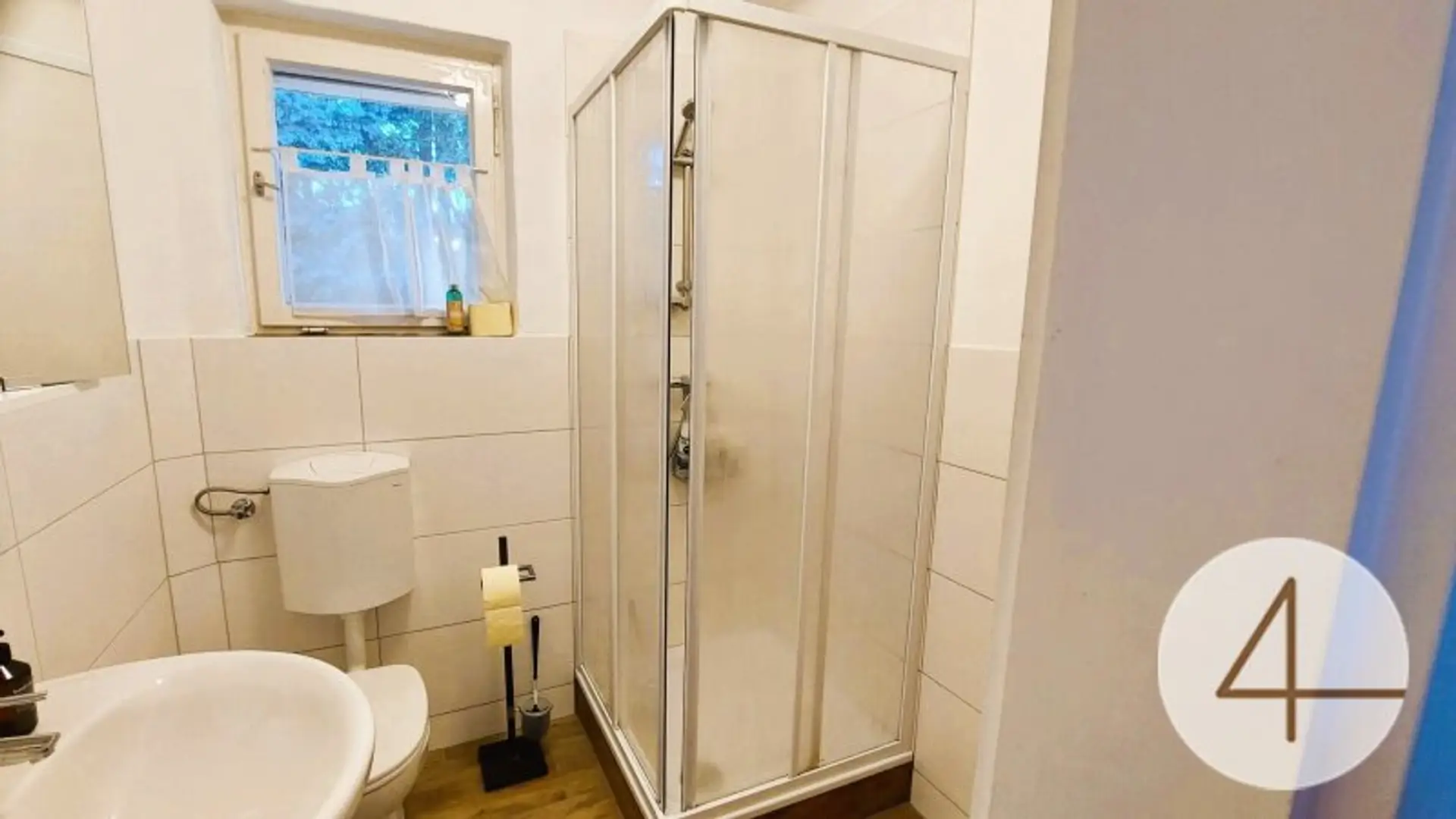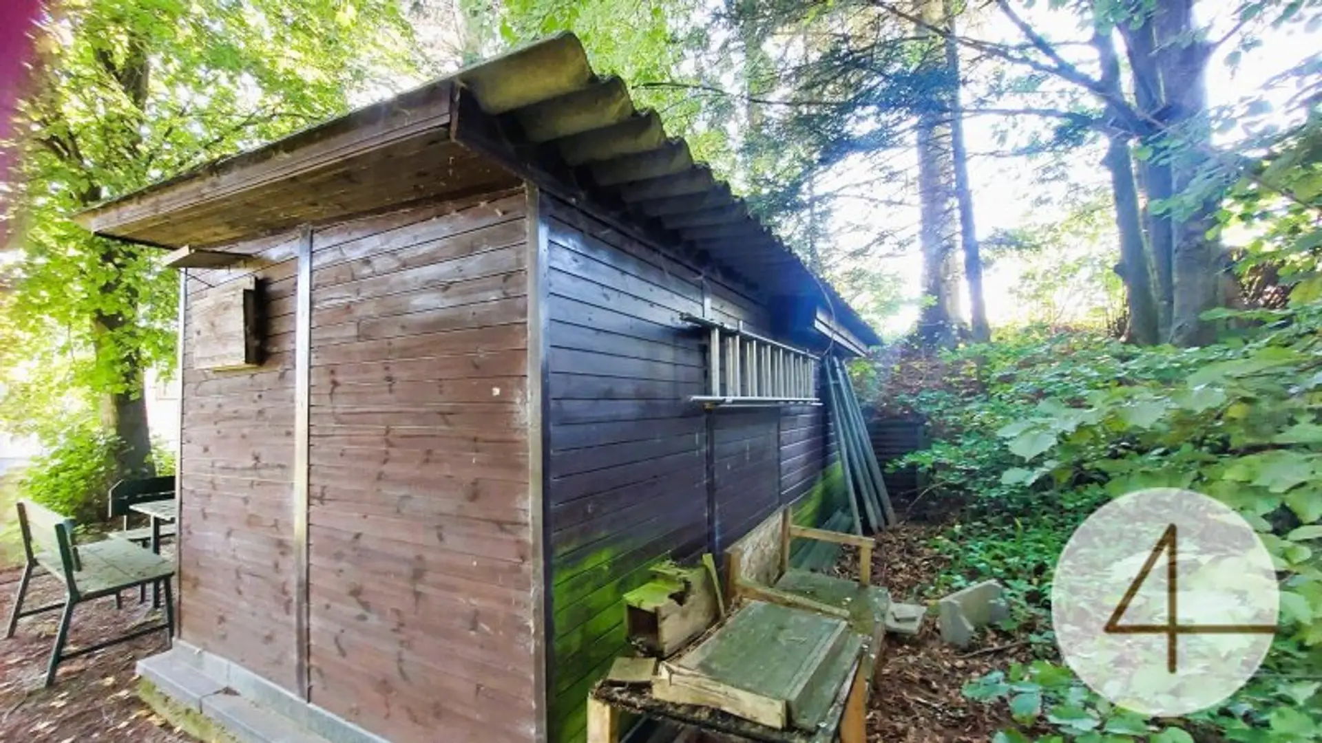 Ein kleiner Holzschuppen mit zwei getrennten Räumen bietet Platz für mehr.