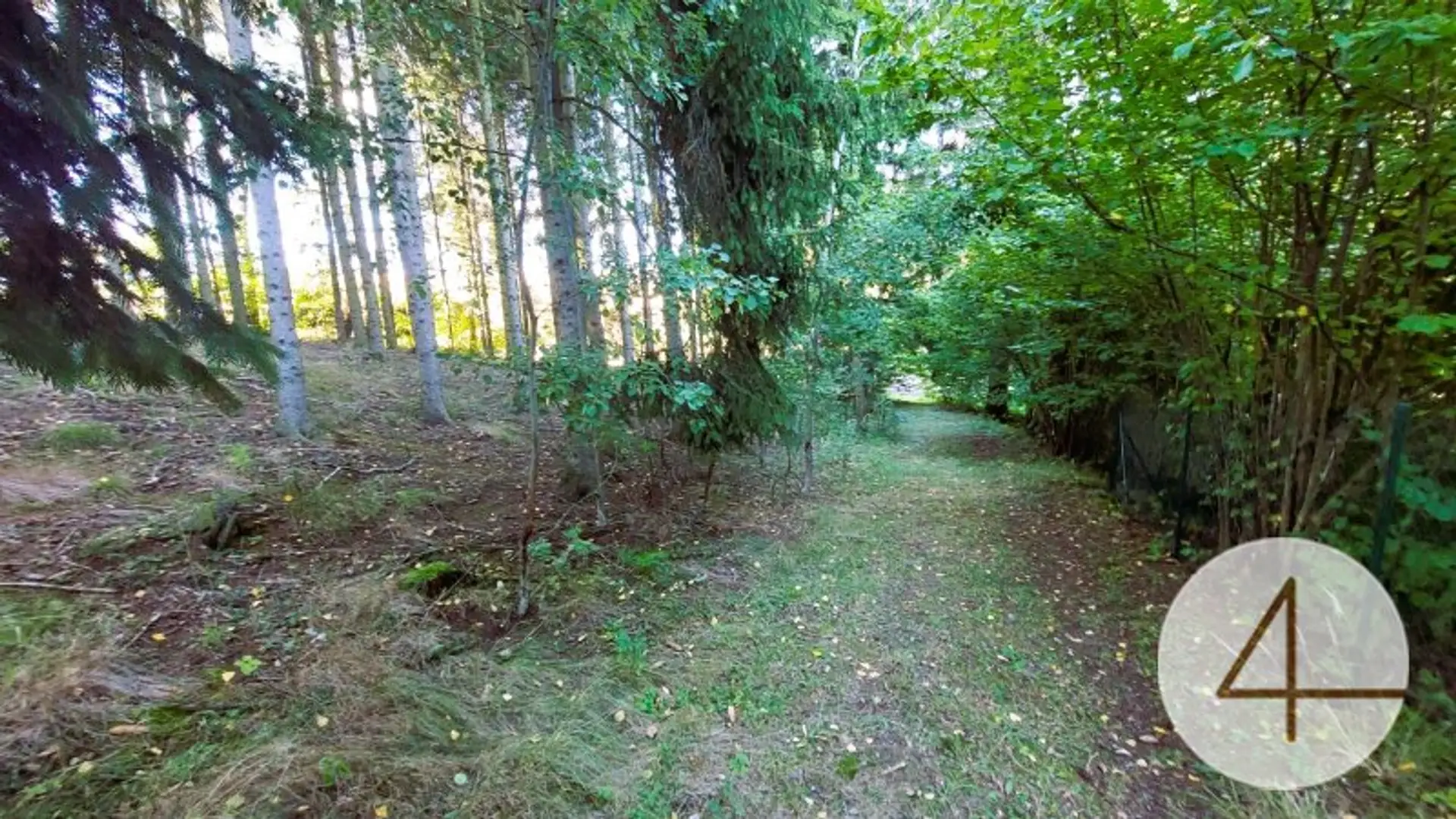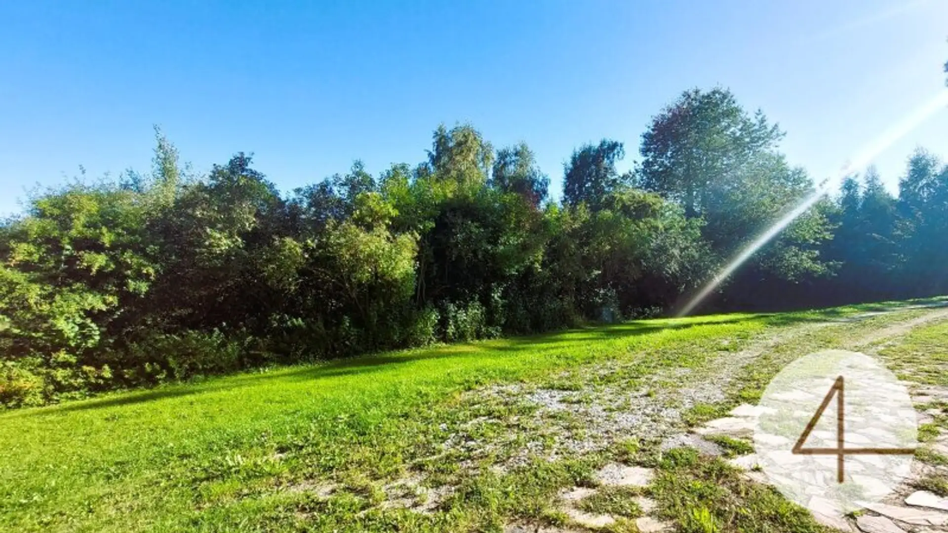 Das Grundstück besteht aus Wald, Wiese, Garten und einem kleinen Feld.