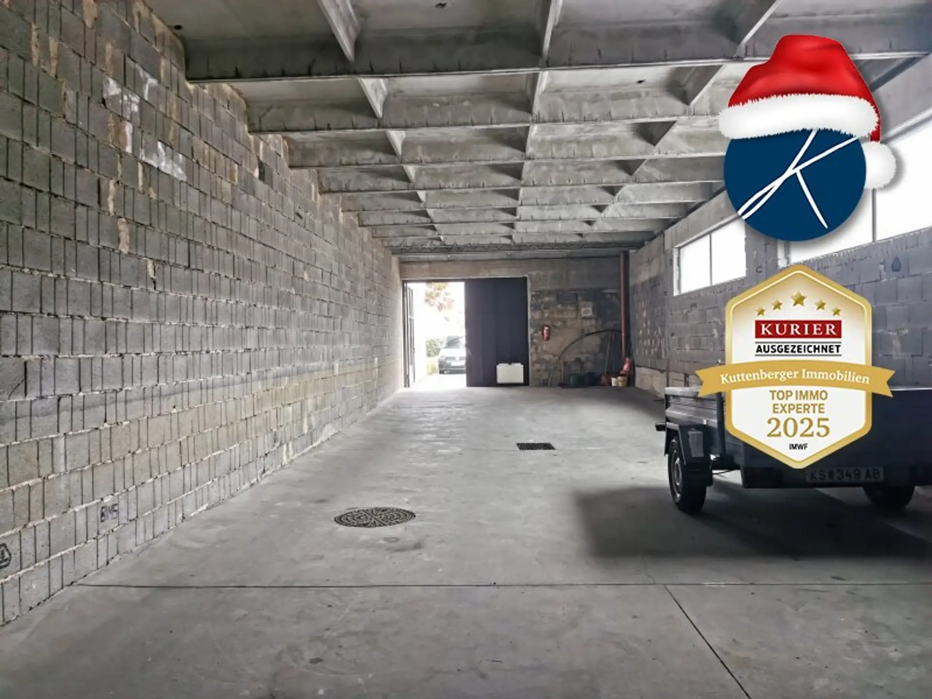 Zum Verkauf gelangt eine Liegenschaft mit einer Lagerhalle/Garage (Nutzfläche ca. 250m²) und einer Gesamtgrundfläche von ca. 501m².