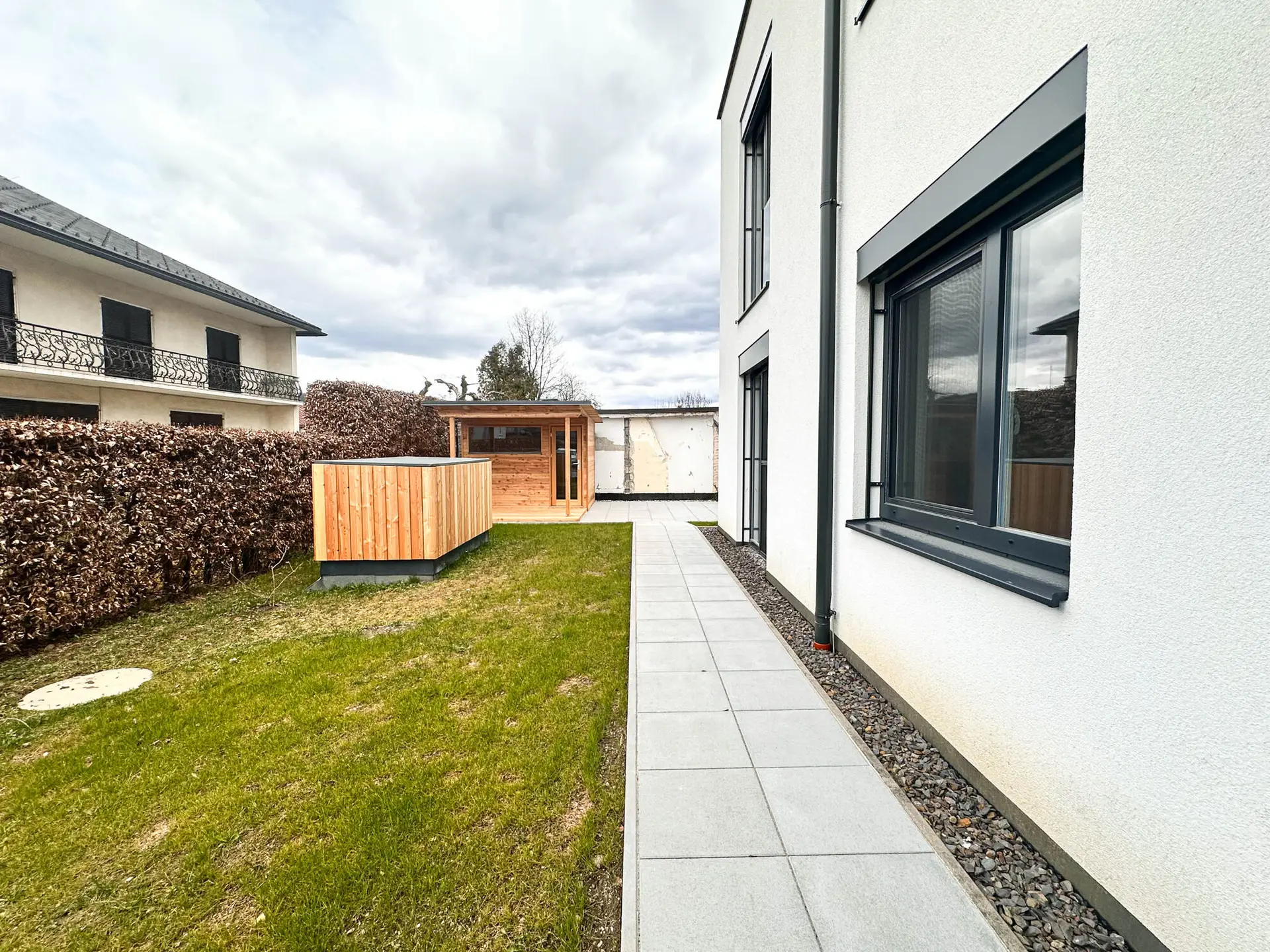 Auf rund 73 m² Wohnfläche entfaltet sich ein durchdachter Grundriss mit klarer Linienführung und hochwertiger Ausführung. Der weitläufige Eigengarten mit über 200 m² sowie die sonnige Terrasse schaffen ein Wohngefühl, das man sonst nur von Häusern kennt – ein Rückzugsort mit Seltenheitswert.