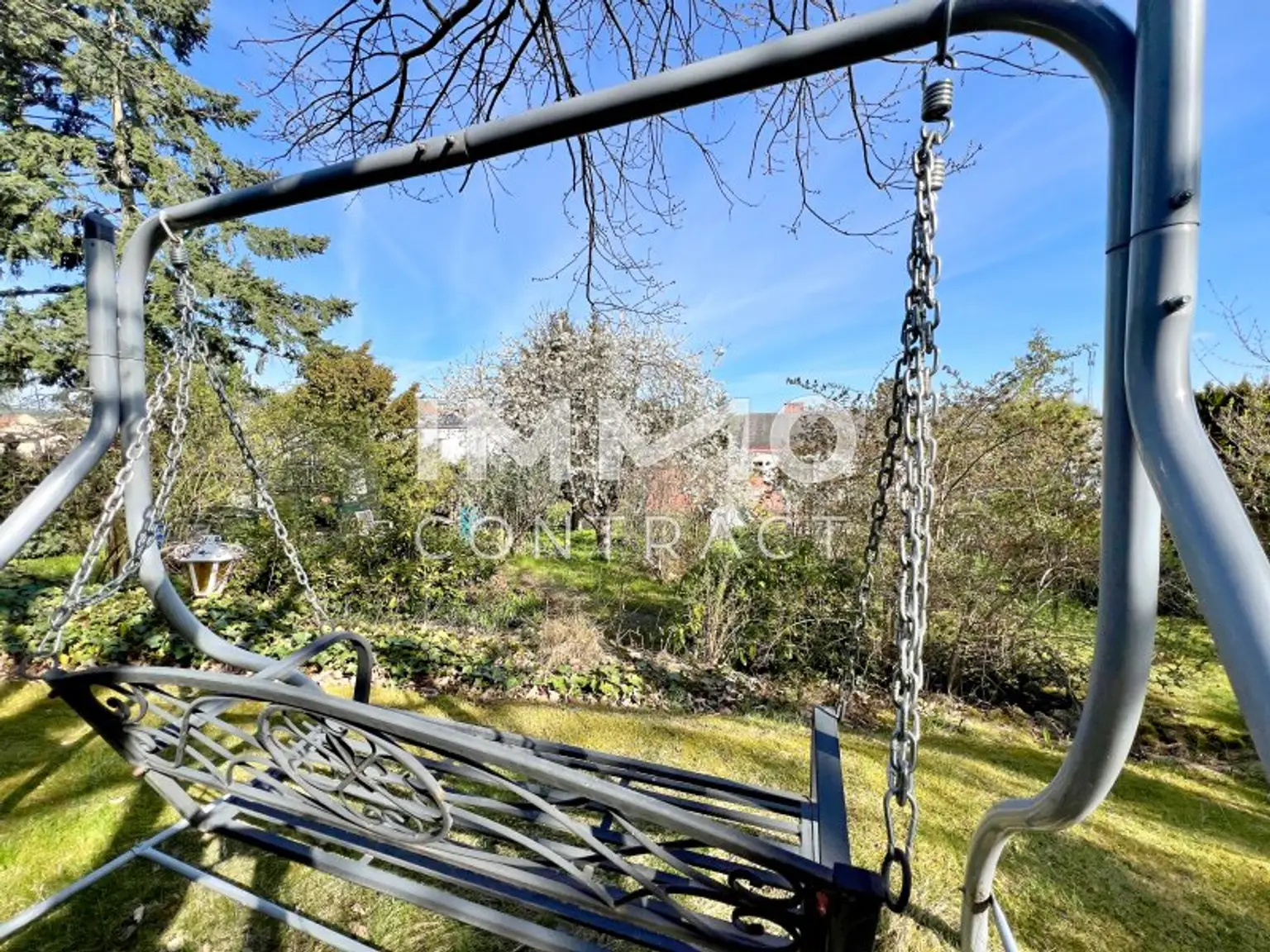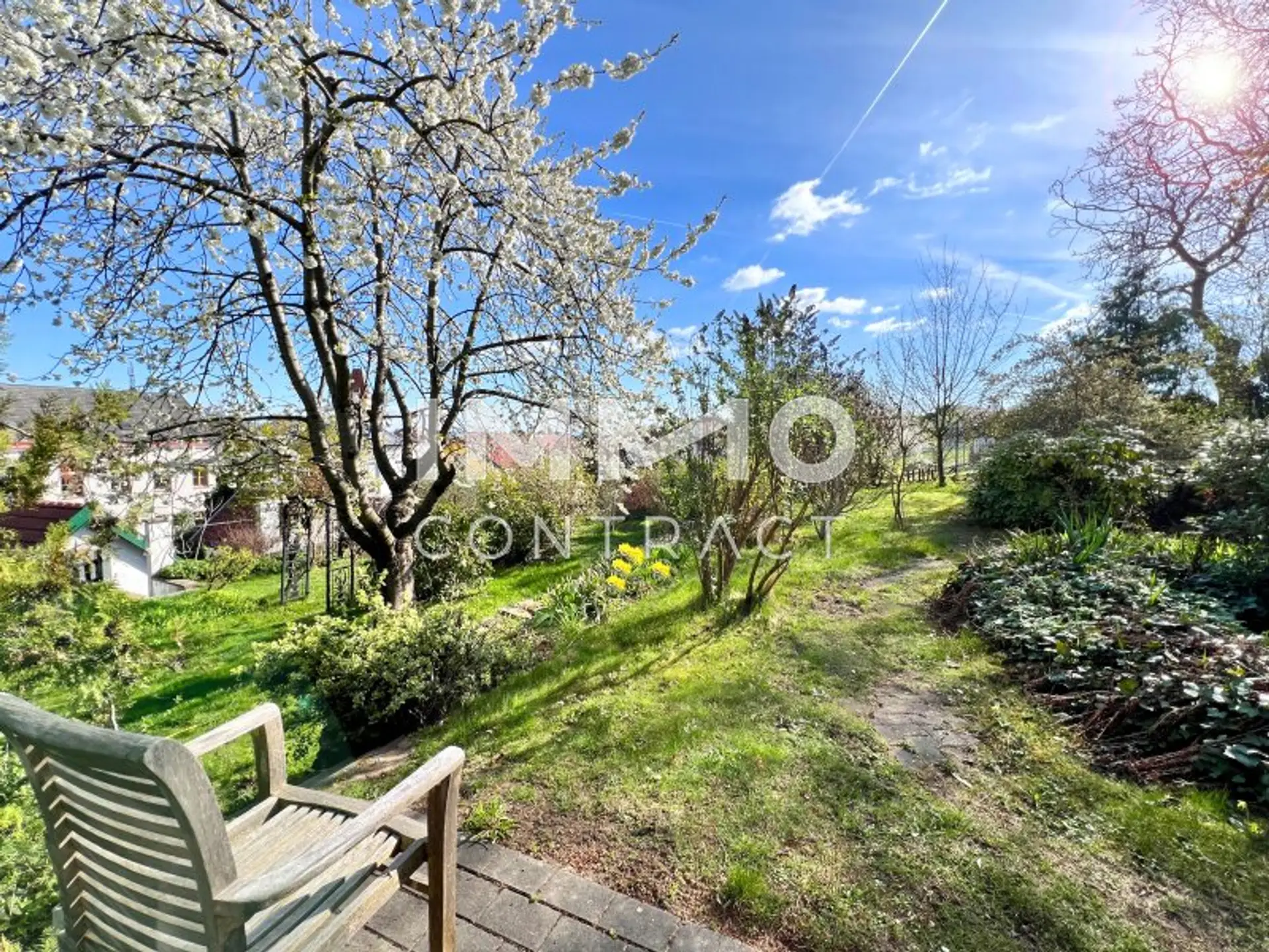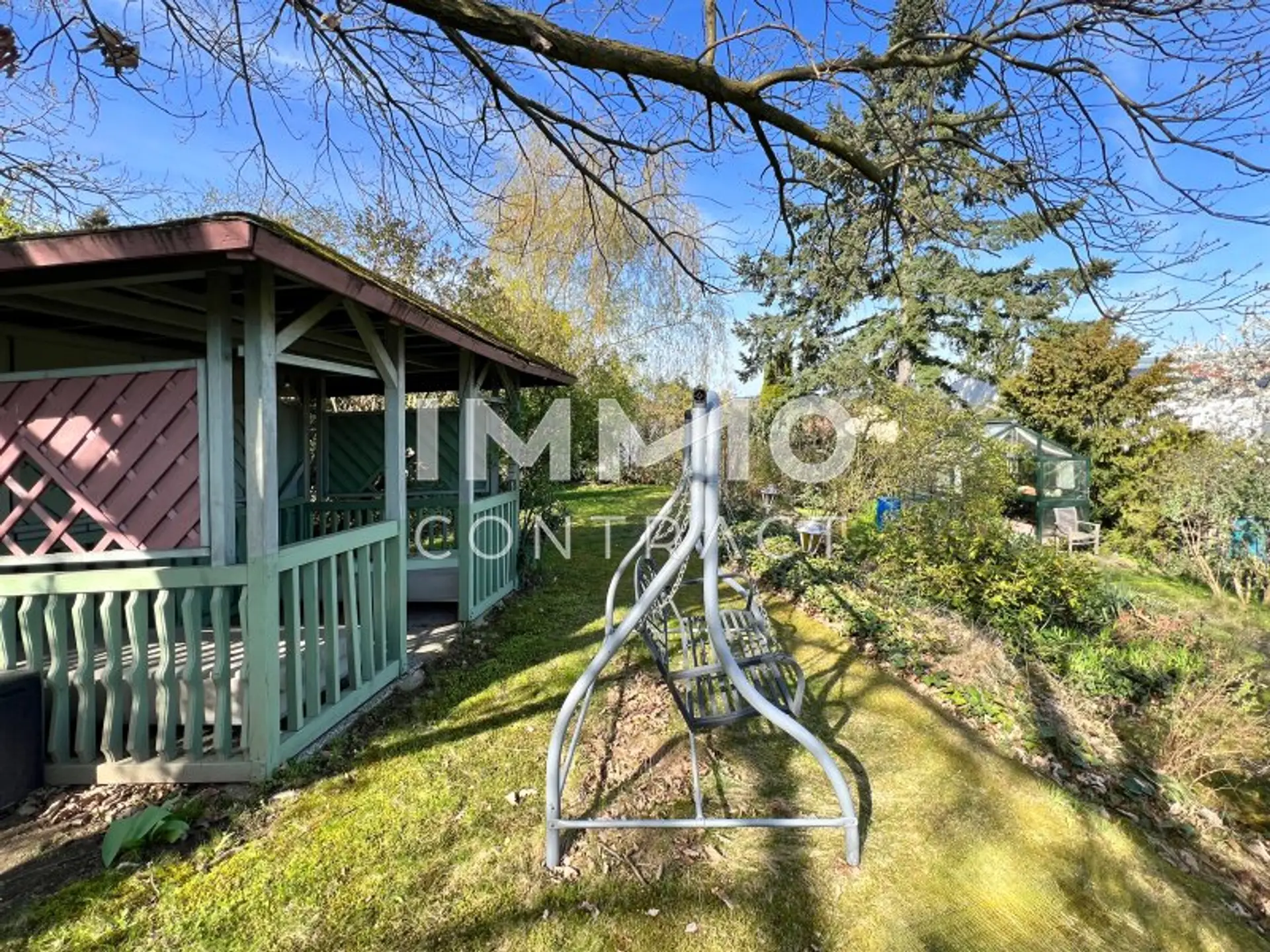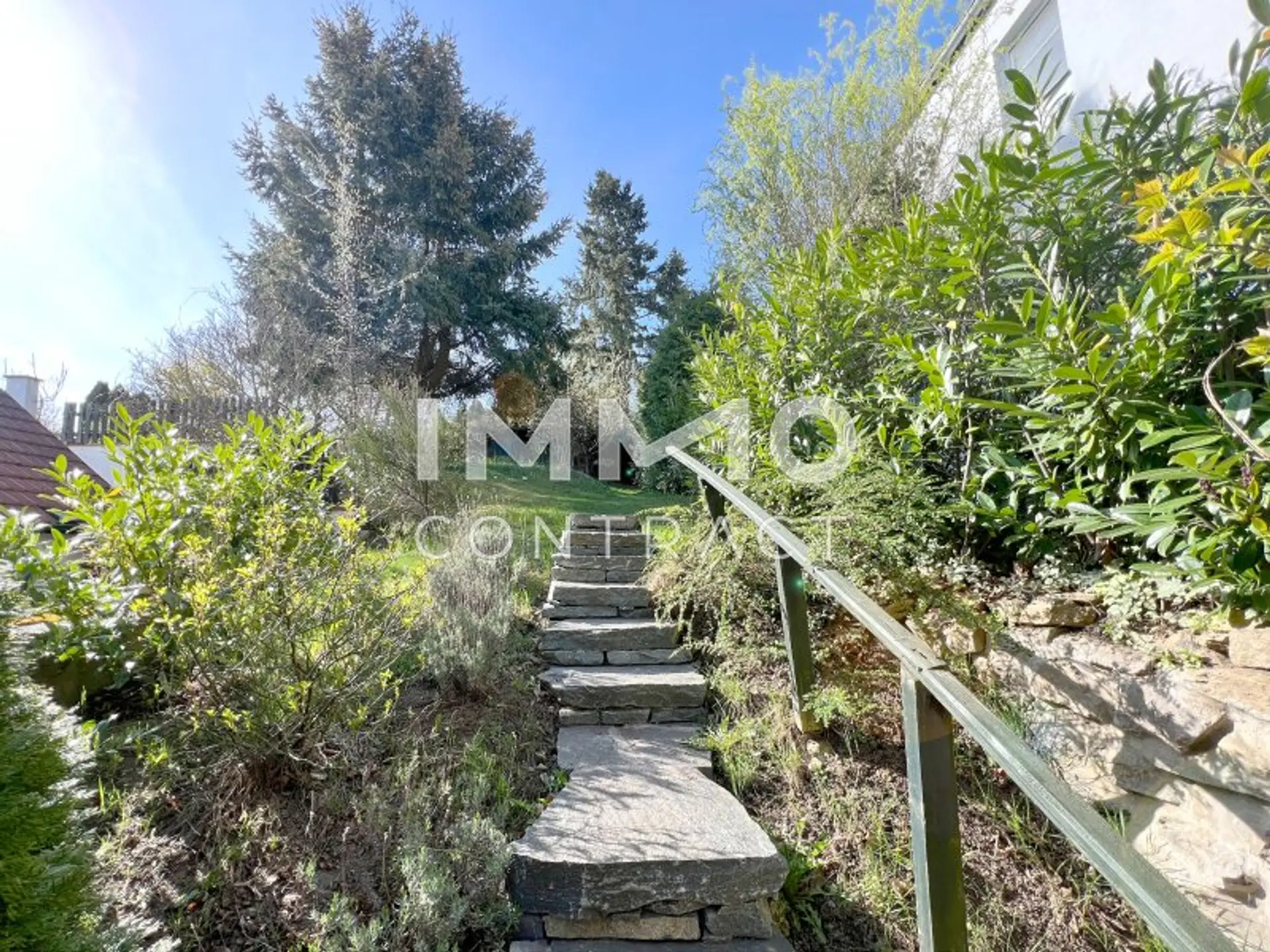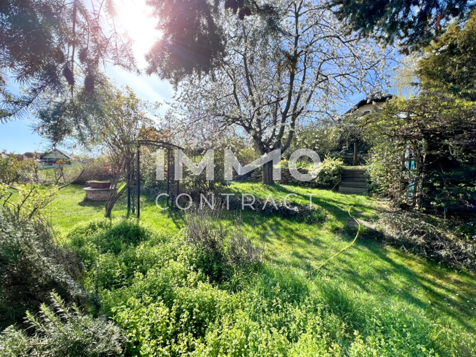 Das 1.242 m² große Grundstück steigt terrassenartig an und eröffnet dadurch immer neue, reizvolle Perspektiven – sei es auf blühende Gärten, sonnige Sitzplätze oder stille Rückzugsorte im Schatten alter Bäume. Hier lässt sich Natur erleben – ganz privat und doch mit viel Weite.