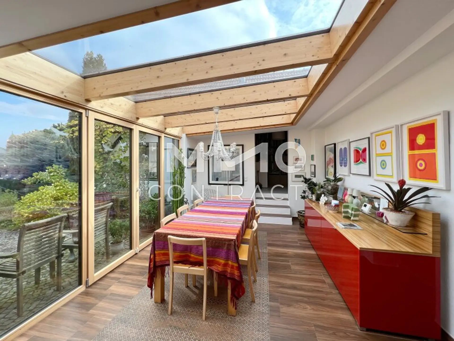 Ein besonderes Highlight ist die Sauna mit direktem Ausgang auf die Terrasse, die pure Entspannung und einen fließenden Übergang zwischen Innen und Außen ermöglicht.