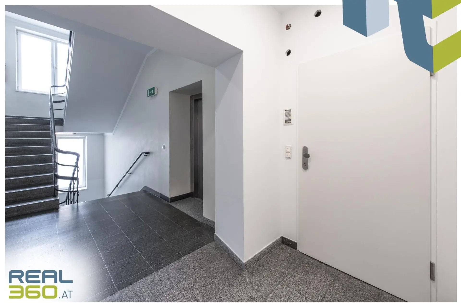 Die Bürofläche verfügt über große Fenster in den Innenhof und ist entweder über das Stiegenhaus oder barrierefrei über den Lift zugänglich. Sie ist für Mitarbeiter, Kunden und Klienten mit öffentlichen Verkehrsmitteln (Straßenbahn, Bahnhofsnähe) leicht erreichbar sowie hofseitig ruhig gelegen und eignet sich gleichermaßen als Büro, Praxis, Kanzlei oder für einen Schulungs-/Seminarbetrieb. Die hofseitige Lage garantiert ein ruhiges, geräuscharmes Arbeitsumfeld.
