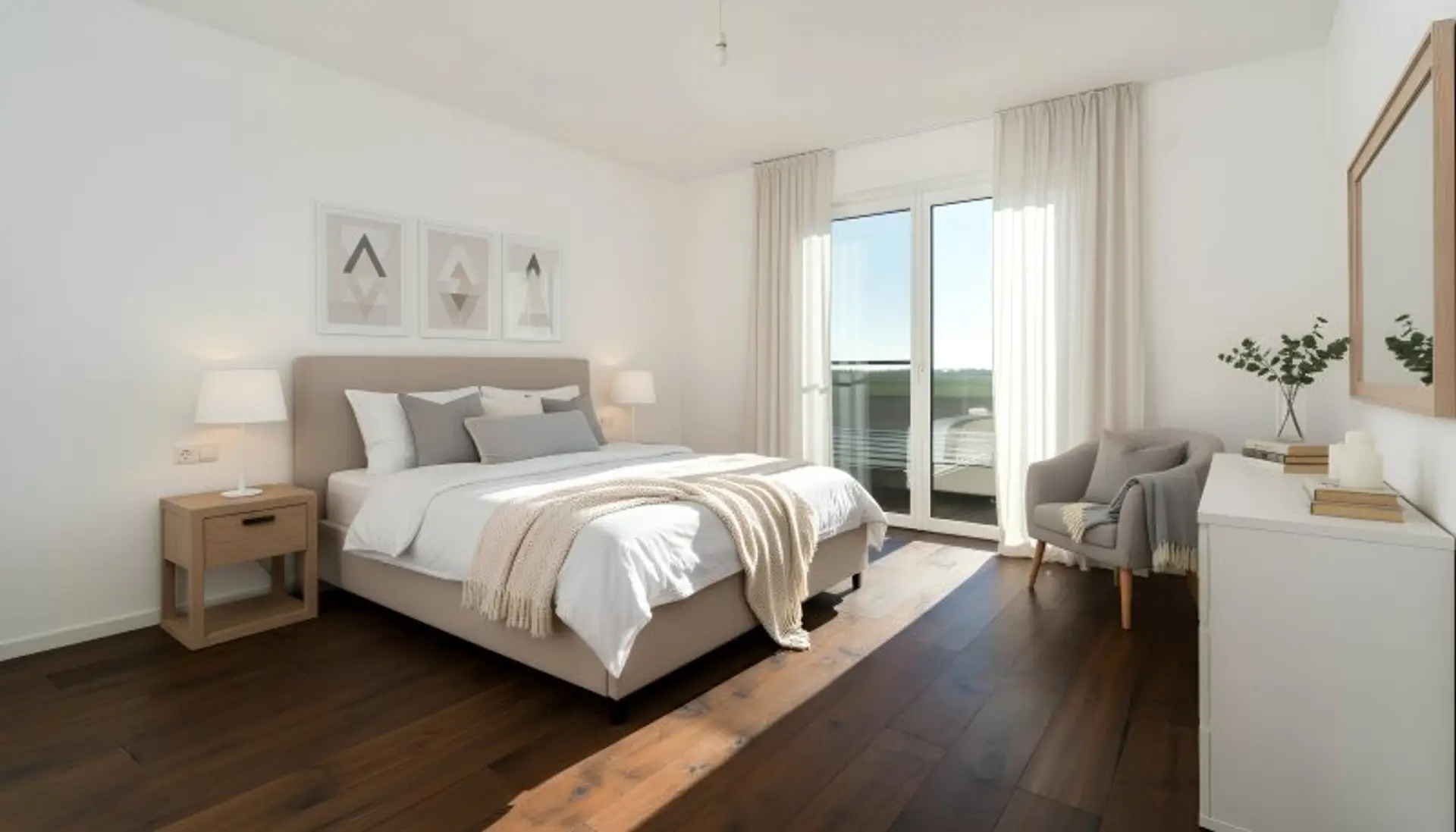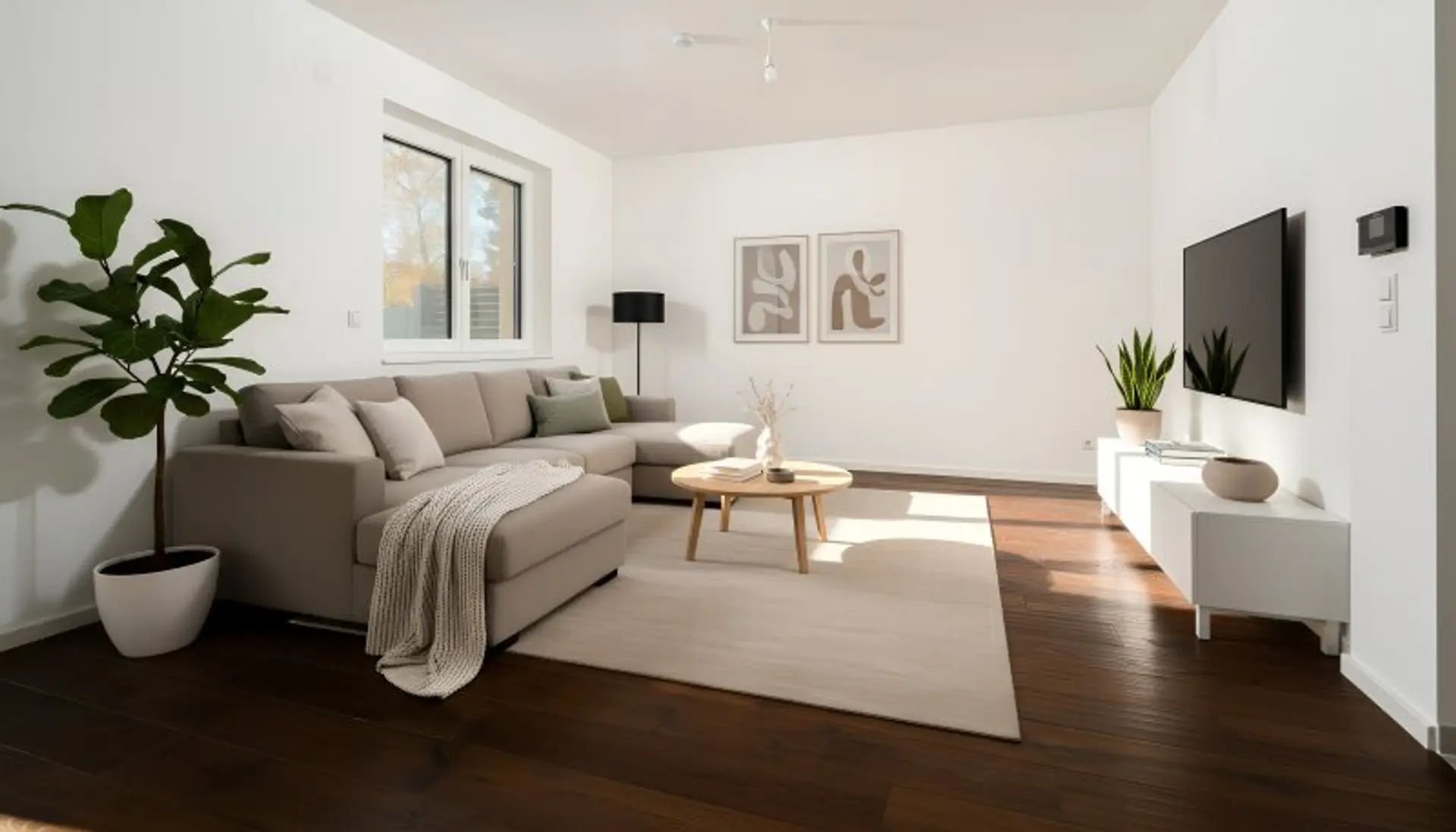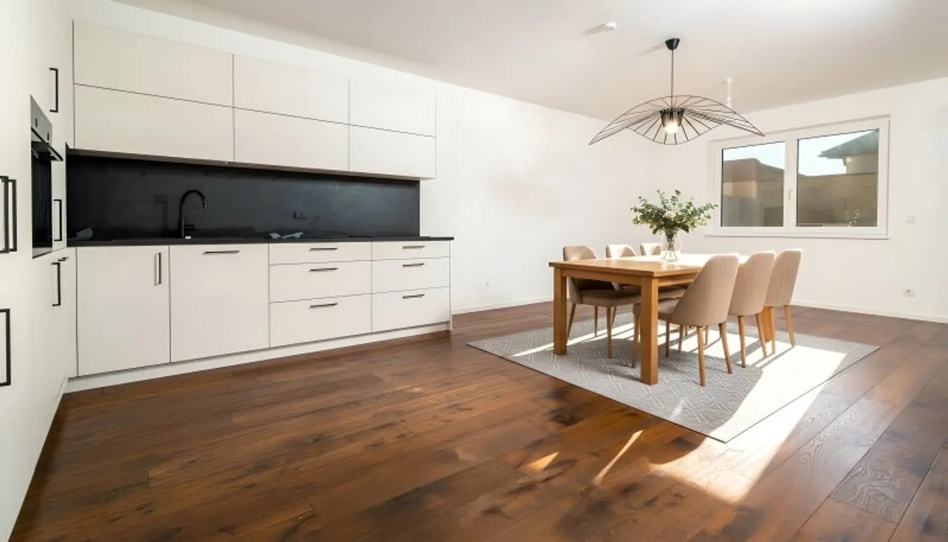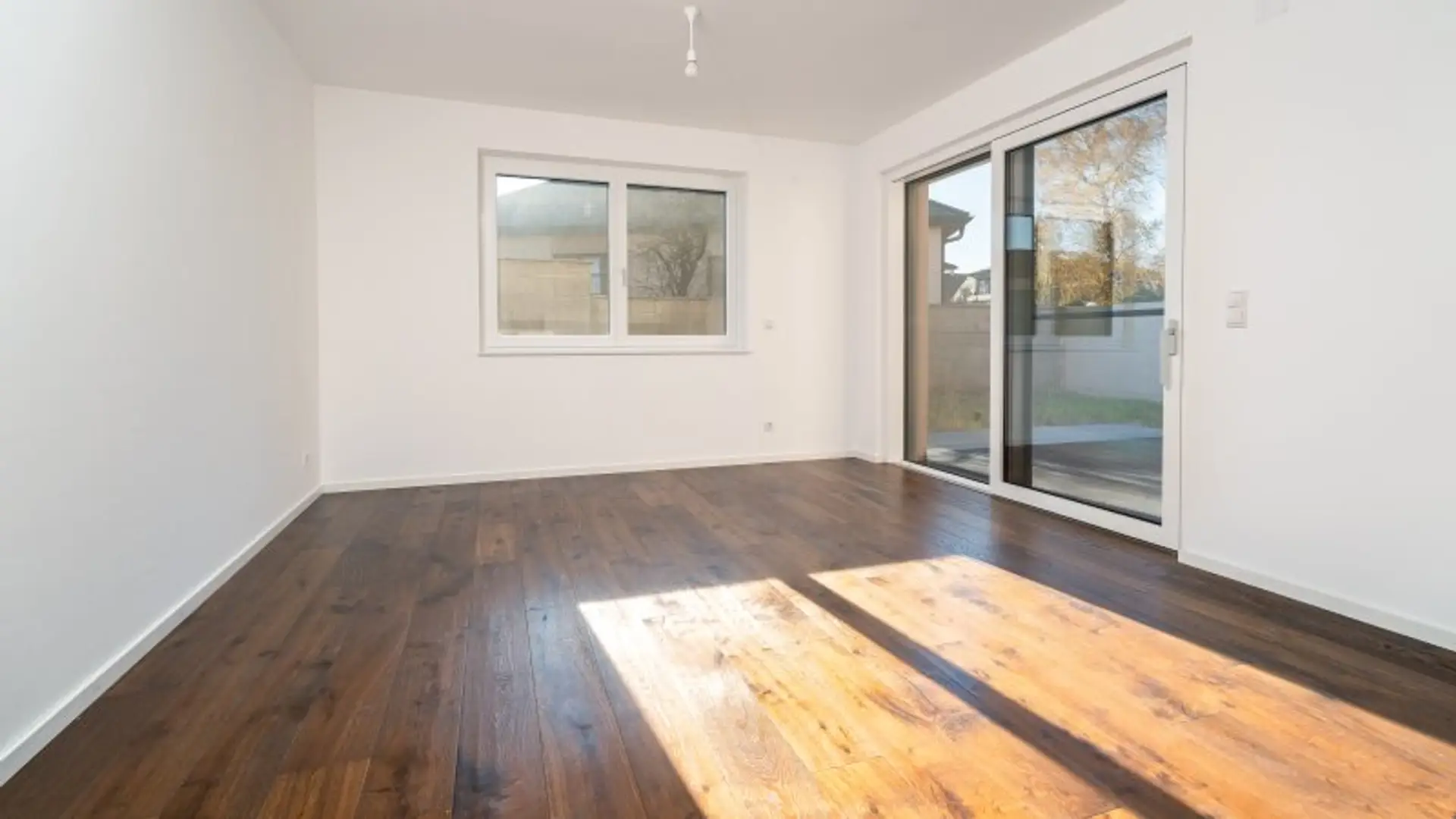 Bereits vom Flur aus öffnet sich der Blick in den hellen und einladenden Wohn-Essbereich – hier ist Wohlfühlen garantiert. Durch die großzügige Hebeschiebetür gelangt man auf die rund 18 m² große Terrasse und weiter in den schönen Gartenbereich. Ein Gartentor führt direkt zu den zwei zugeordneten Stellplätzen, die das Angebot abrunden.