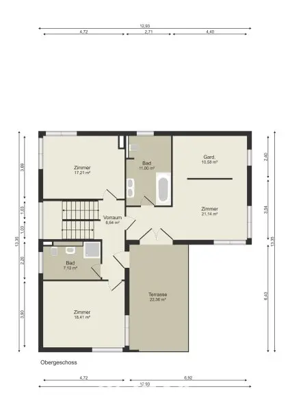Der erste Stock beherbergt einen weitläufigen Master-Bedroom mit atemberaubender Aussicht und der Möglichkeit für ein privates Ankleidezimmer. Zwei weitere helle Räume lassen sich flexibel als Kinderzimmer, Gästezimmer oder Homeoffice gestalten. Zwei edle Designer-Badezimmer verwöhnen Sie mit Ästhetik und Komfort – stets mit dem Blick ins Grüne und auf das Wasser.
