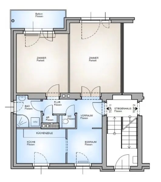Die Ausstattung ist gut – Parkettböden in den Wohnbereichen, moderne Verfliesung im Sanitärbereichen, Isolierglasfenster, Waschmaschinenanschluss, Gegensprechanlage und Kabelanschluss.
