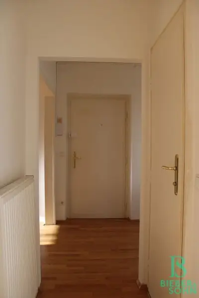 Ein Vorraum mit einem Duschbad mit Waschmaschinenanschluss, einem WC und einem Abstellraum, 2 große Zimmer und 1 kleines Durchgangszimmer, eine große Küche, ein sonniger Süd Balkon, ein Kellerabteil und ein allgemeiner Garten bietet diese Wohnung an.