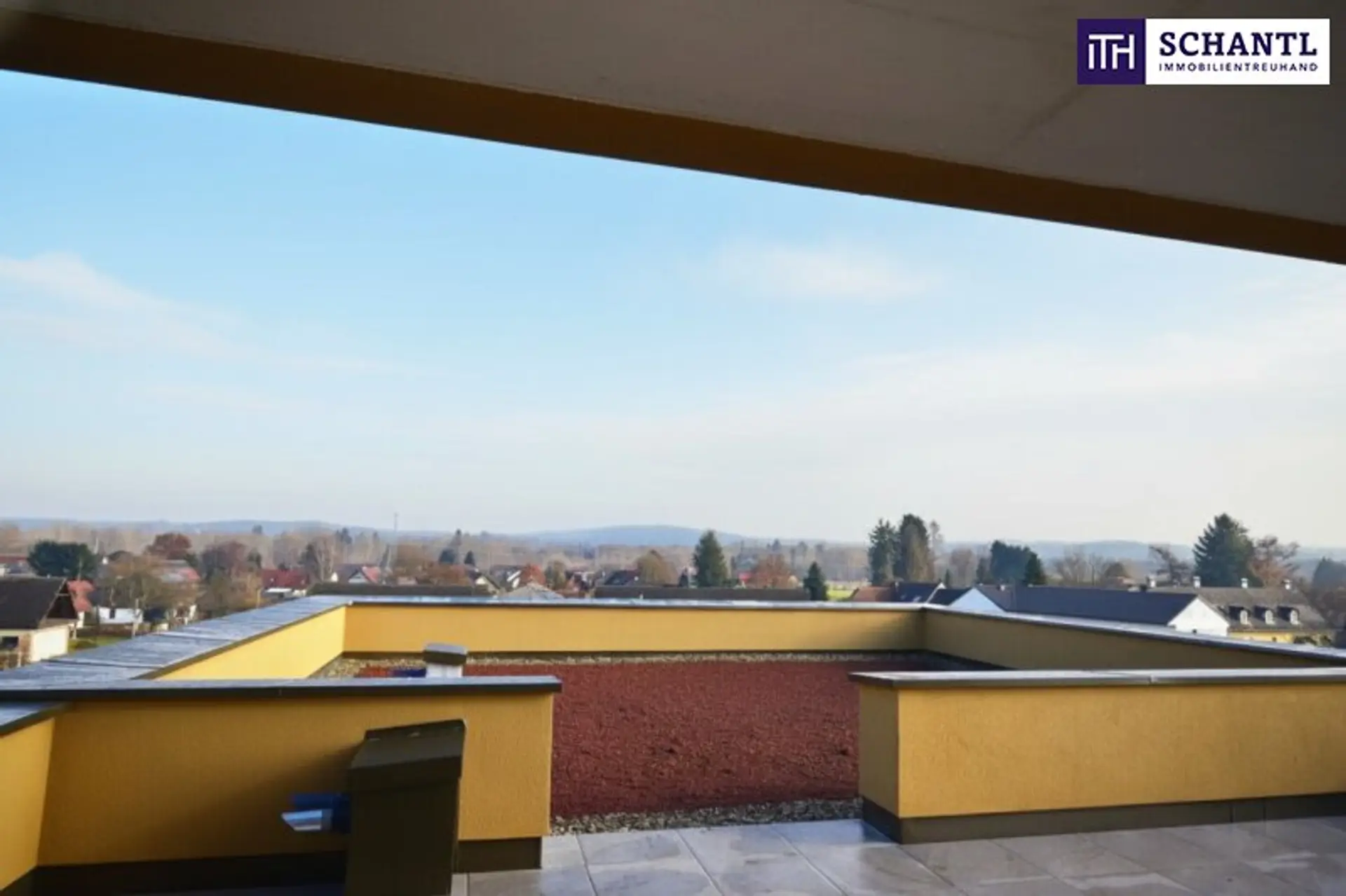 Zu den Highlights des PENTHOUSE zählt ganz klar die 85 m² große Dachterrasse mit RUNDUMBLICK, welcher ausreichend Platz für gemütliche Grillabende mit der Familie oder mit Freunden bietet.