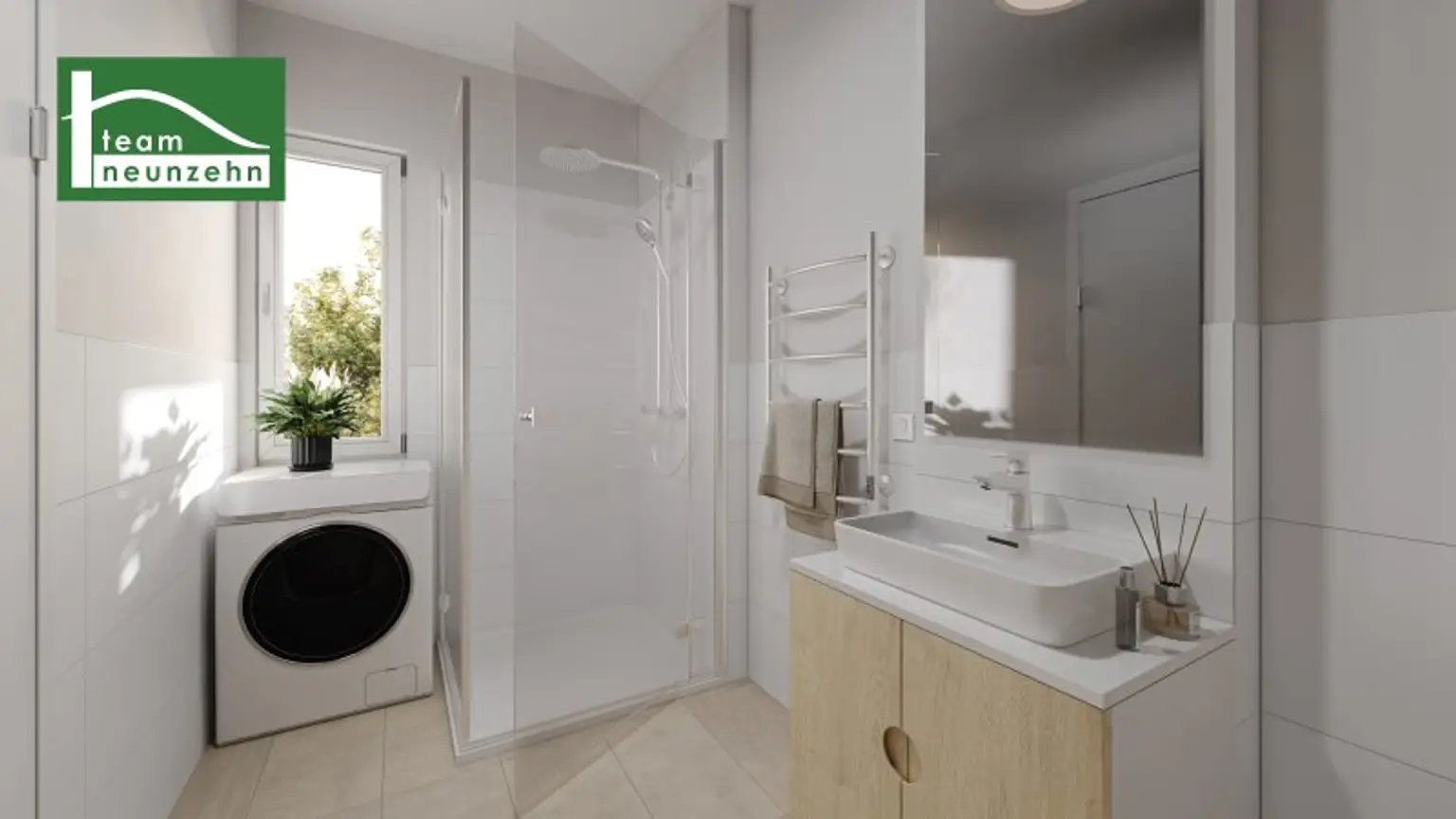 Die Ausstattung entspricht modernen Wohnansprüchen: elegante Badezimmer, hochwertige Materialien sowie energieeffiziente Haustechnik – inklusive Luftwärmepumpe und Fußbodenheizung – sorgen für zeitgemäßen Wohnkomfort.