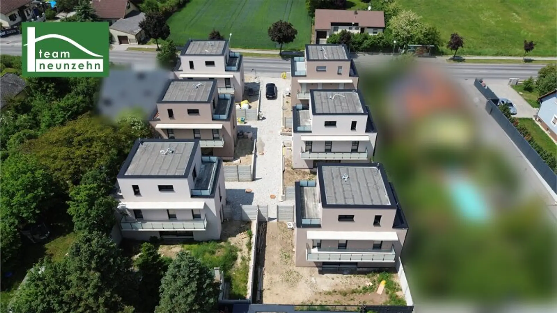 Jede Wohneinheit verfügt über großzügige Freiflächen wie Eigengarten, Terrasse und/oder Balkon und bietet damit zusätzlichen Lebensraum im Freien. Pro Haus können zwei PKW-Stellplätze erworben werden (je EUR 15.000). Die Außenanlagen sind geplant und werden zeitnah umgesetzt, wodurch ein stimmiges Gesamtbild entsteht.