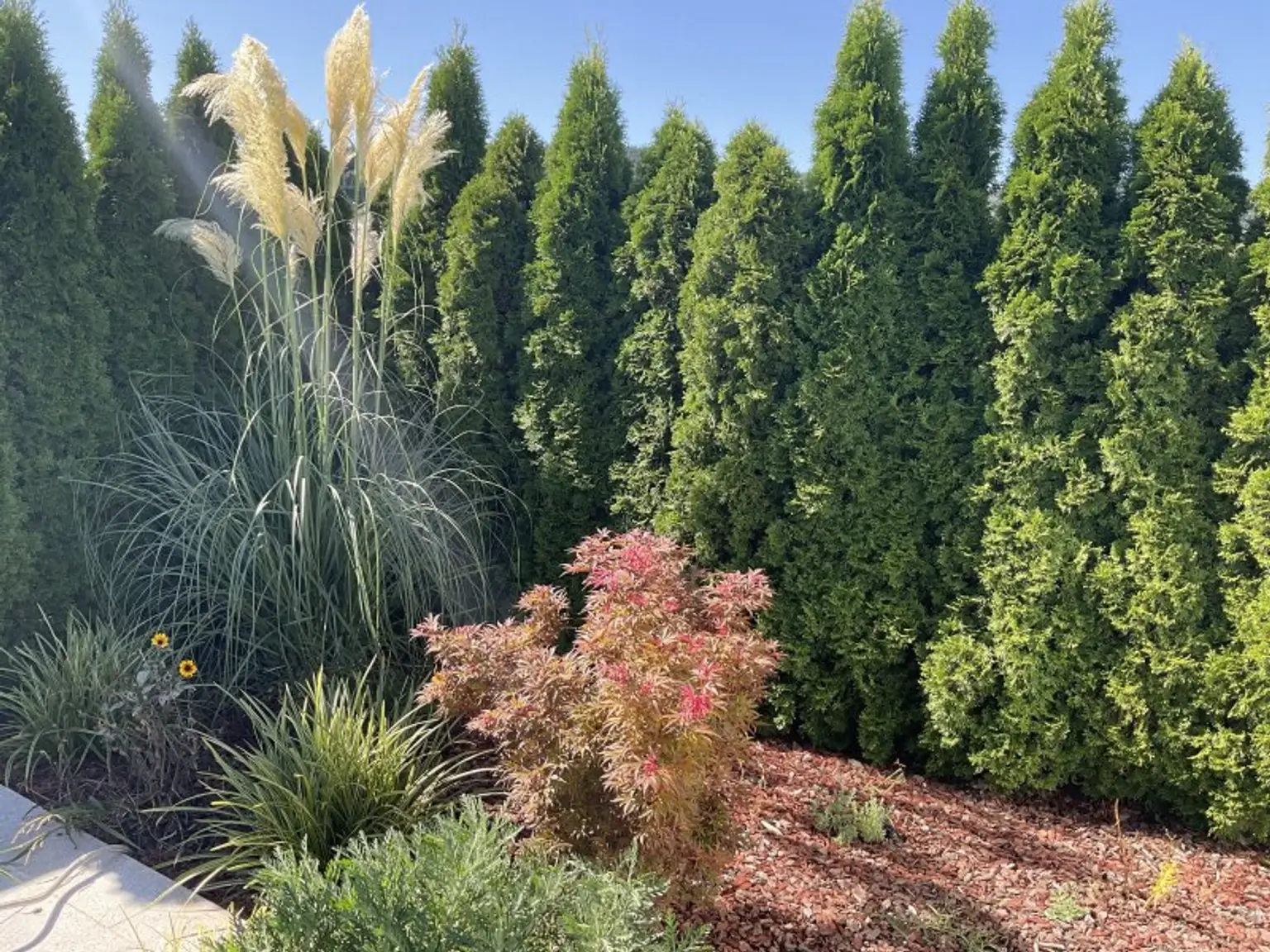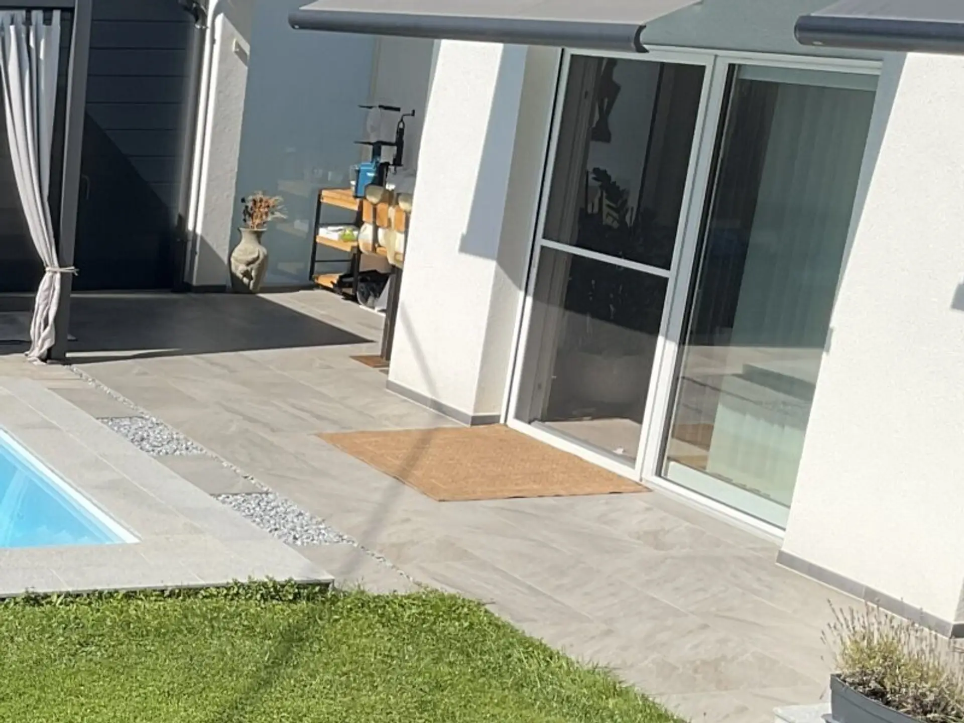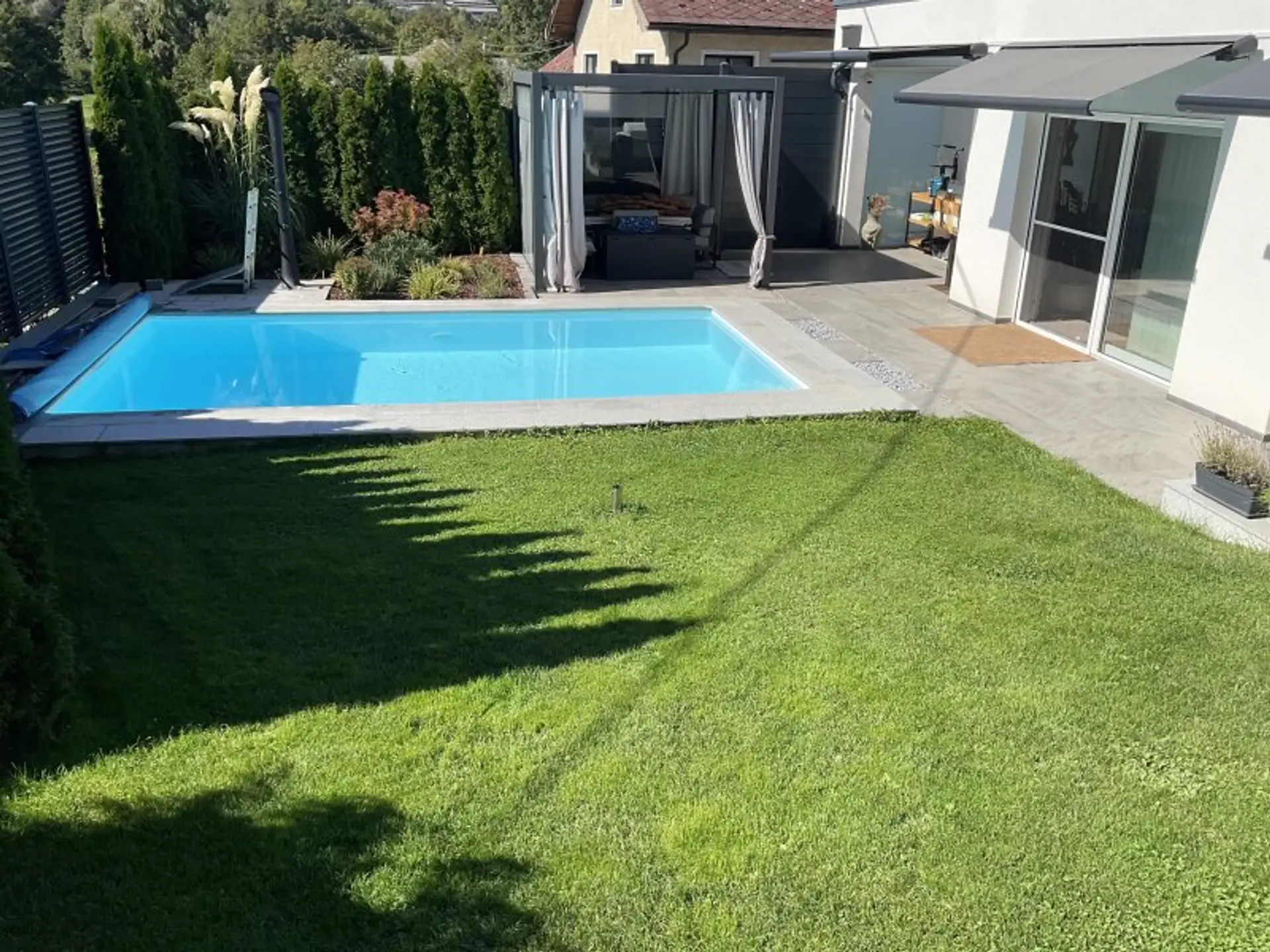 * Gartenlounge mit Poolblick