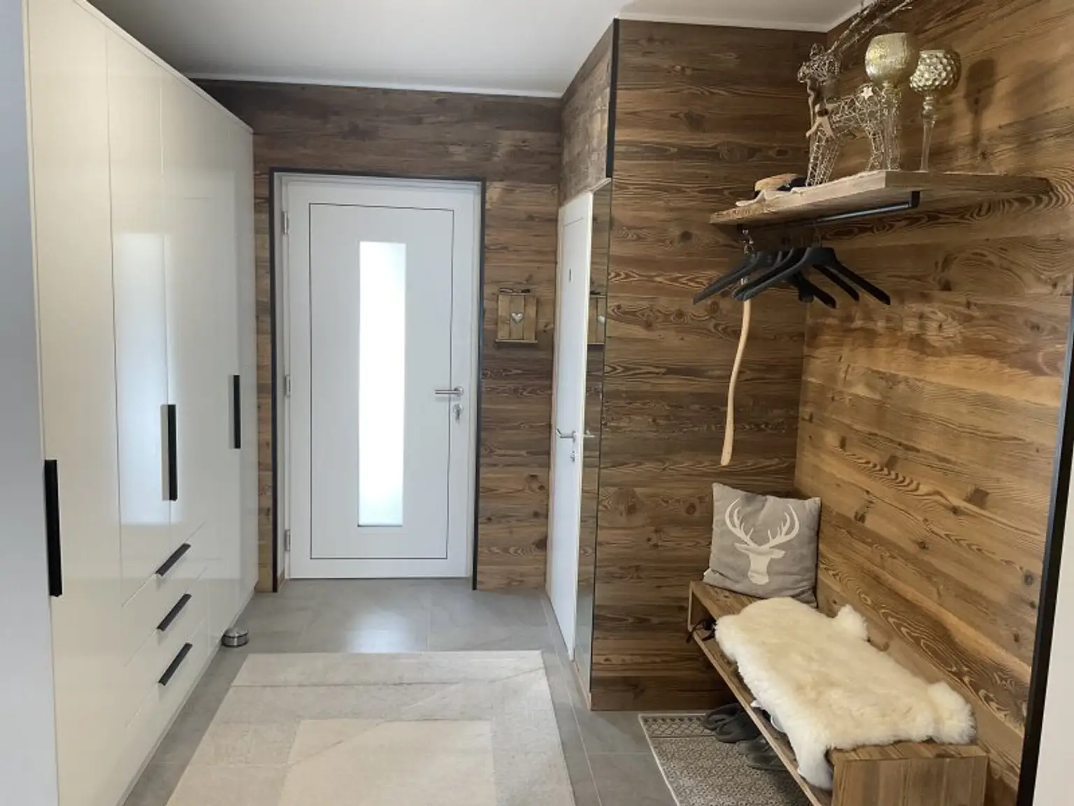 * alte Holzwände (Tirol) im Vorraum, Essbereich und Wohnzimmer