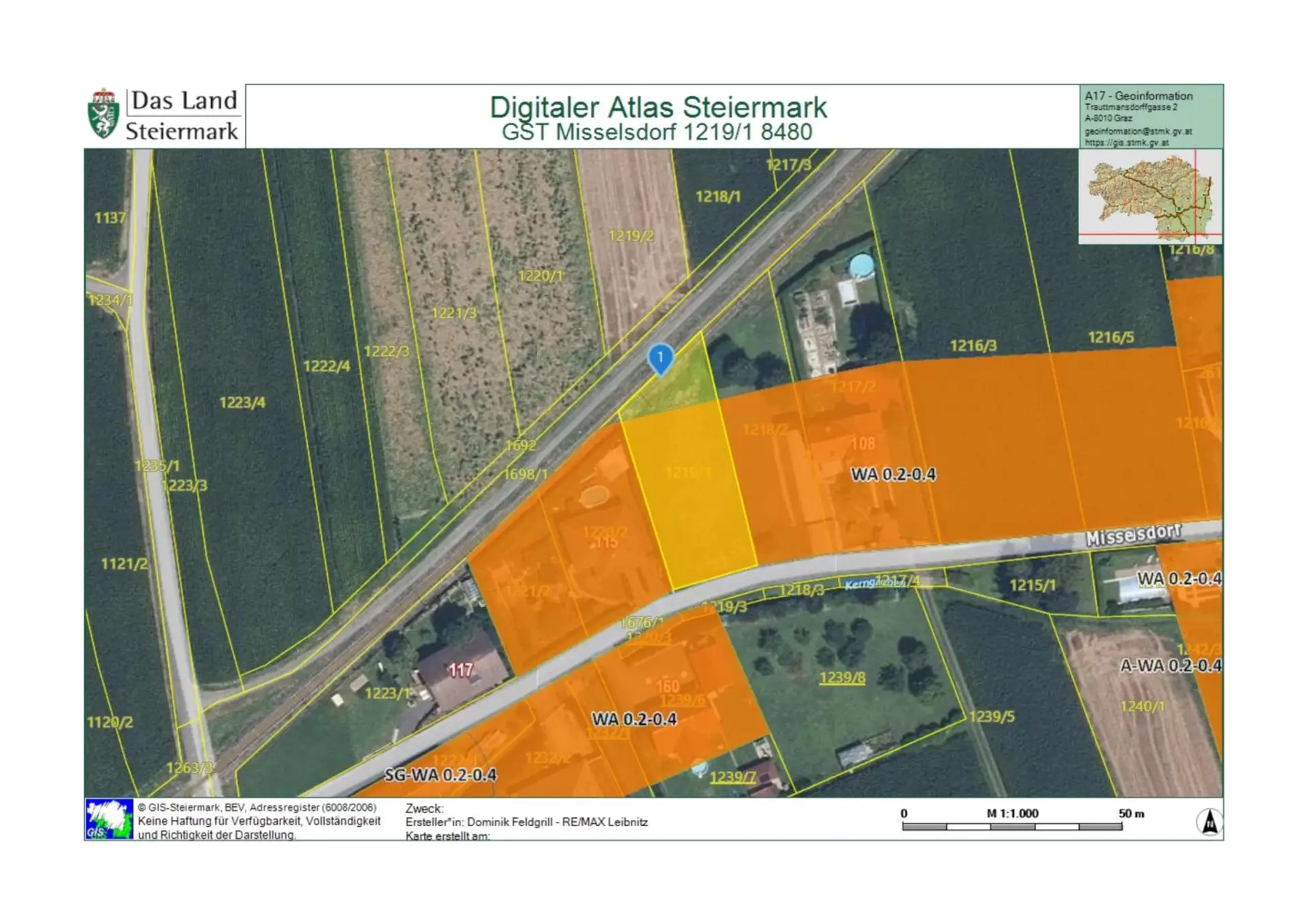 In ebener Lage nordöstlich von Mureck eröffnet sich diese Bauparzelle als leistbare Möglichkeit, den Schritt in die eigenen vier Wände zu realisieren. Das Grundstück überzeugt durch seine klare Struktur und bietet mit rund 1.043 m² Gesamtfläche ausreichend Raum für individuelle Wohnkonzepte, wobei laut Kataster etwa 800 m² als reines Bauland ausgewiesen sind. Die Widmung als Wohngebiet Allgemein mit einer Bebauungsdichte von 0,2 bis 0,4 schafft dabei einen soliden Rahmen für eine zeitgemäße Bebauung, ohne den Charakter einer lockeren Siedlungsstruktur zu verlieren.