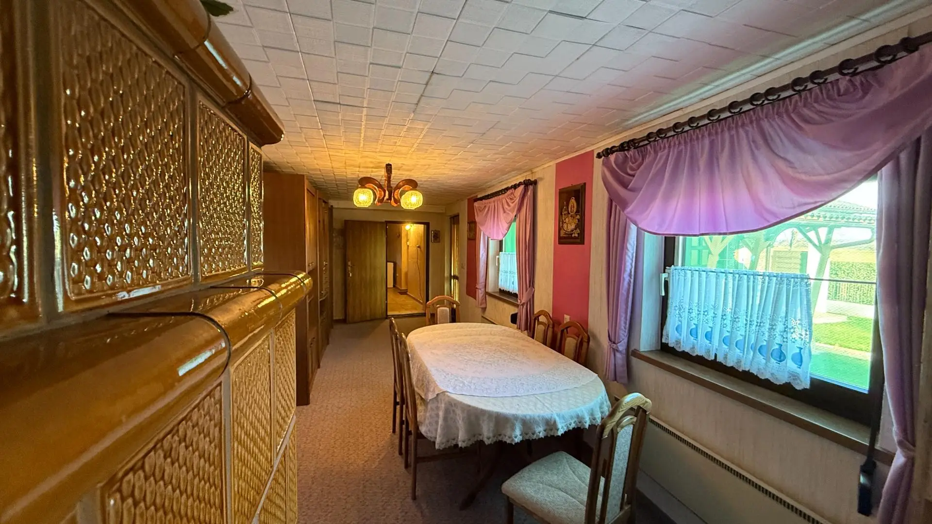 Beheizt wird das Haus mittels Elektroheizung, ergänzt durch einen Pelletofen in der Küche sowie einen Kachelofen im Wohnzimmer, die für angenehme Wärme sorgen.