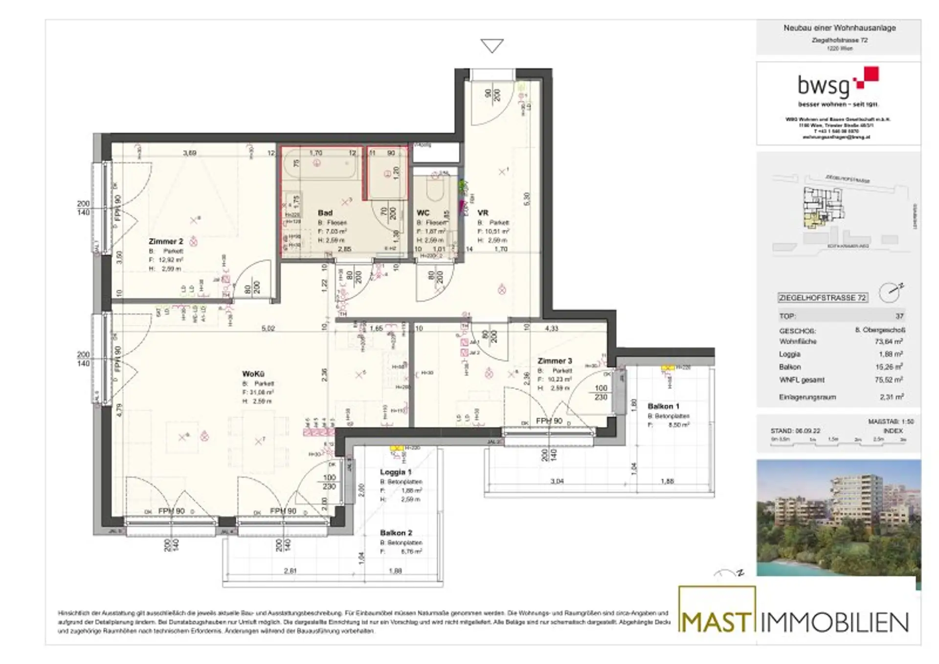 Details Wohnung Ziegelhofstraße 72 Top 37: