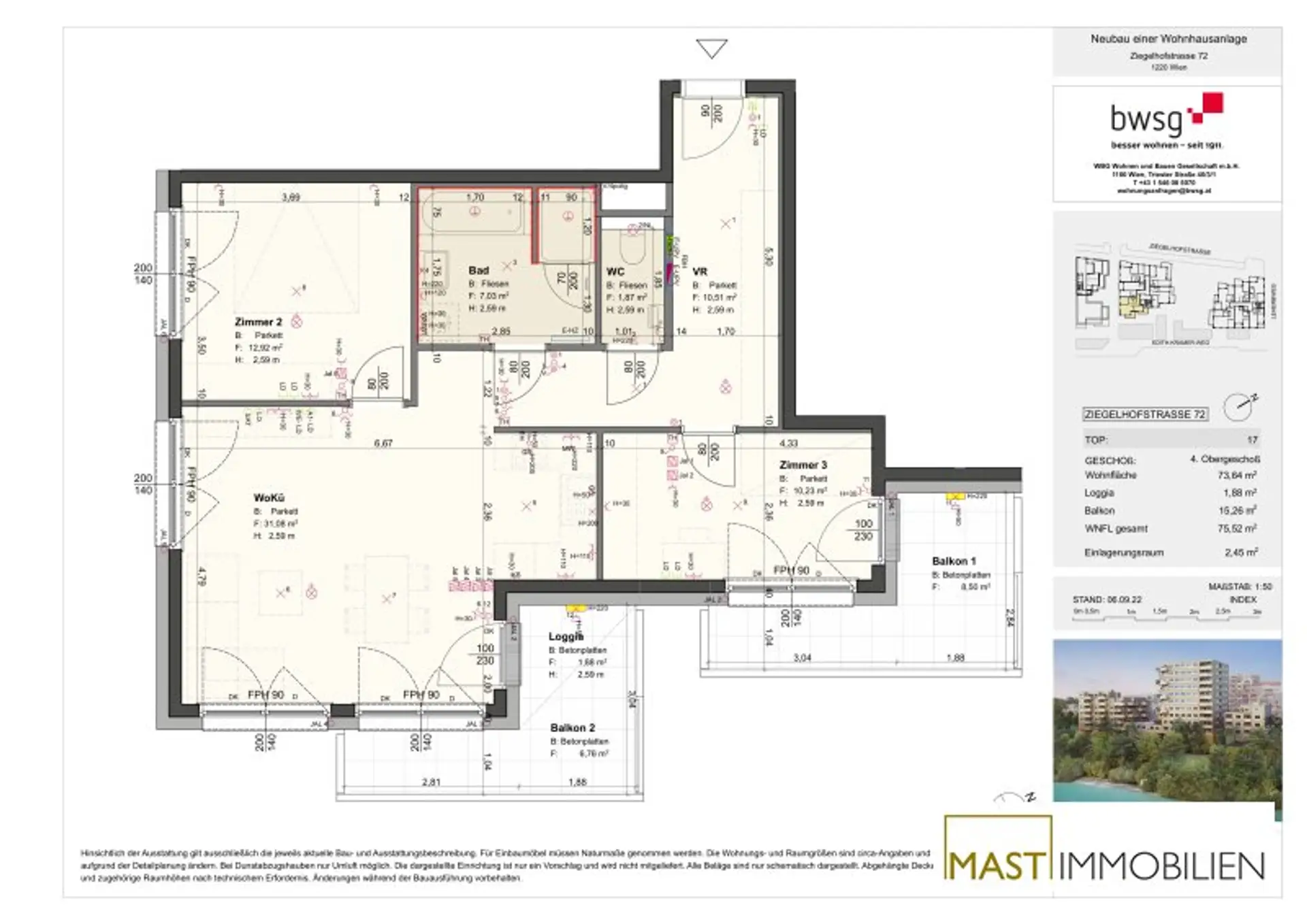 Details Wohnung Ziegelhofstraße 72 Top 17: