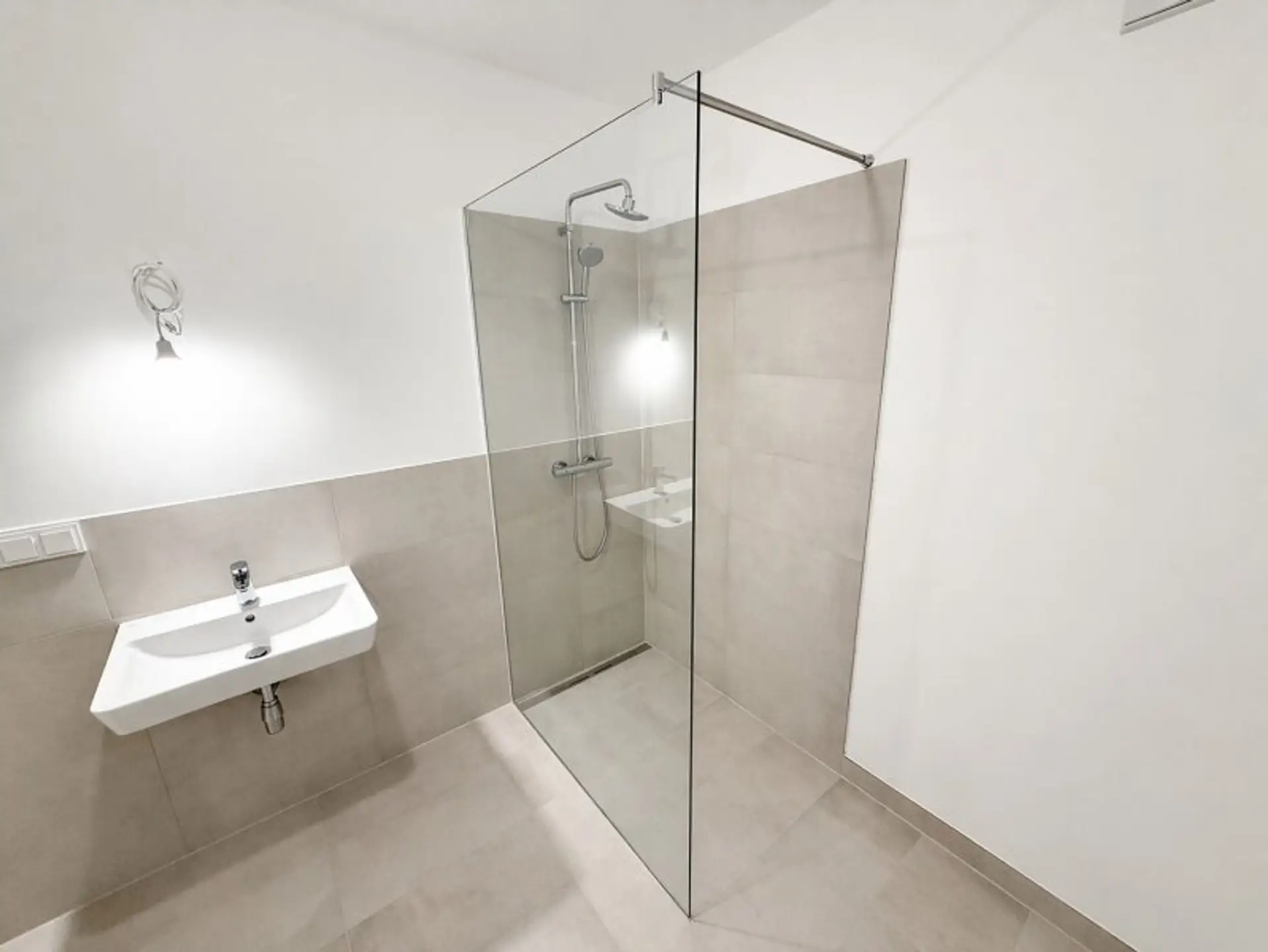 * Badezimmer mit bodenebener Dusche, Waschbecken WC und WM-Anschluss