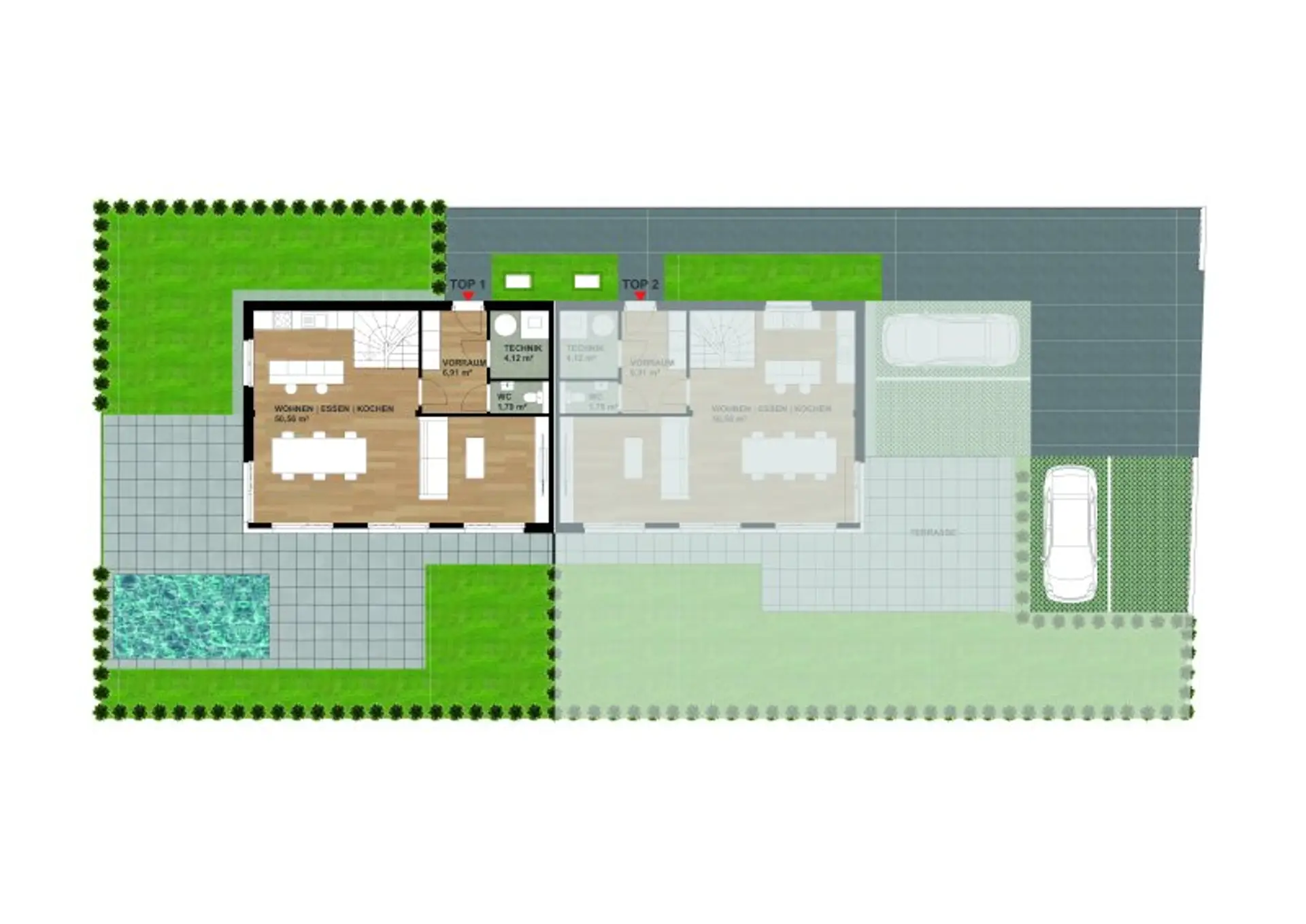 In der beliebten Gemeinde Pottendorf steht nur noch Haus 1 dieses modernen und hochwertig errichteten Doppelhauses zum Verkauf – ein Haus wurde bereits verkauft!