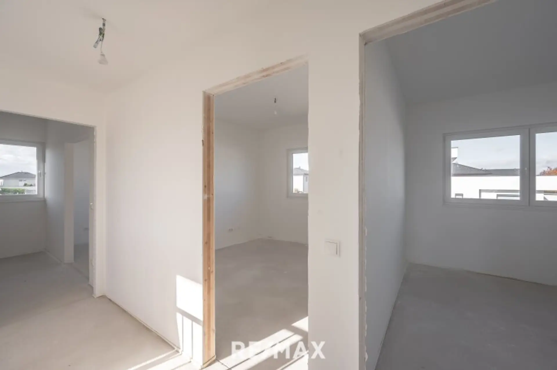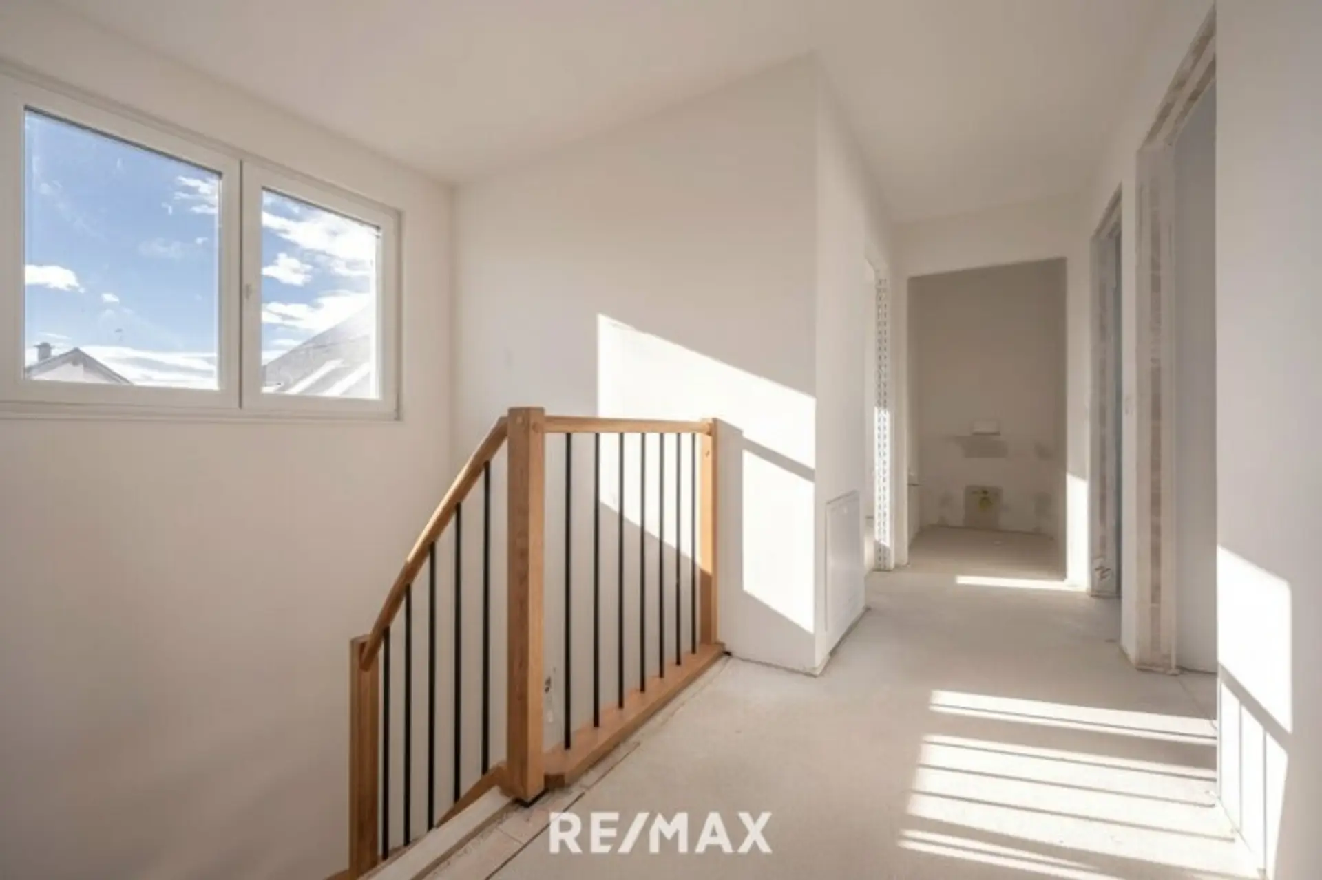 Im Obergeschoss stehen vier Zimmer sowie ein geräumiges Bad mit Fenster (vorbereitet für eine Walk-in-Dusche, eine Badewanne sowie zwei Waschtische) und ein separates WC zur Verfügung.