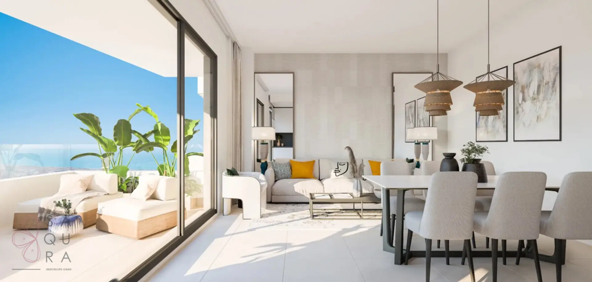 Letzte verfügbare Musterwohnung mit Terrasse & Privatgarten – möbliert, mit Panoramablick (Region Málaga)