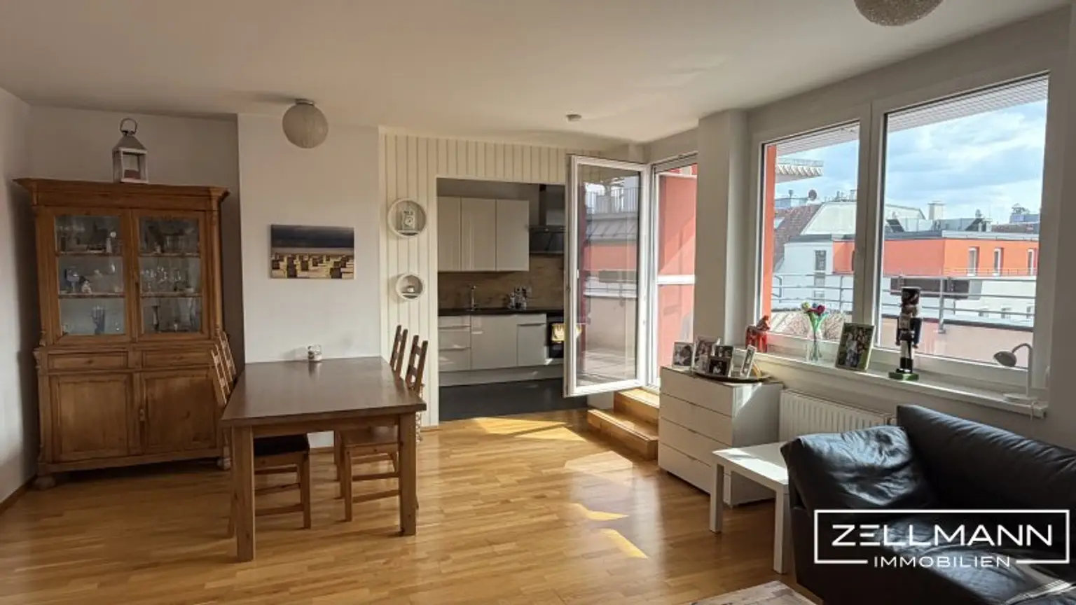 Diese Dachgeschosswohnung überzeugt durch ihre seltene Kombination aus großzügiger Wohnfläche, zwei Terrassen, durchdachter Raumaufteilung und inkludiertem Garagenplatz.